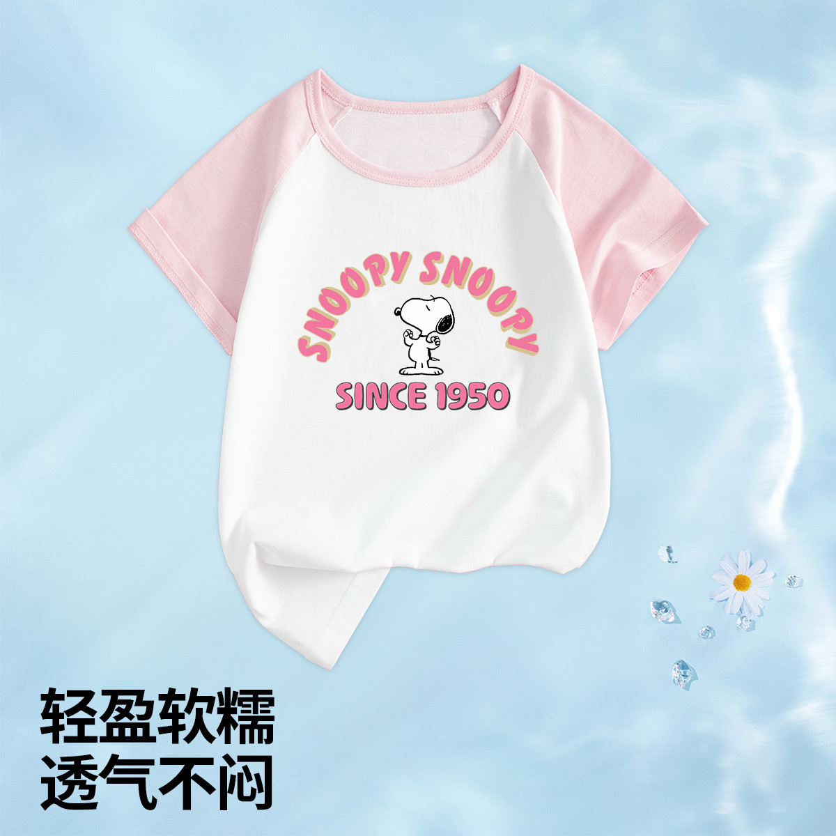 【100%纯棉插肩袖百搭t】夏季儿童短袖女童T恤 735768