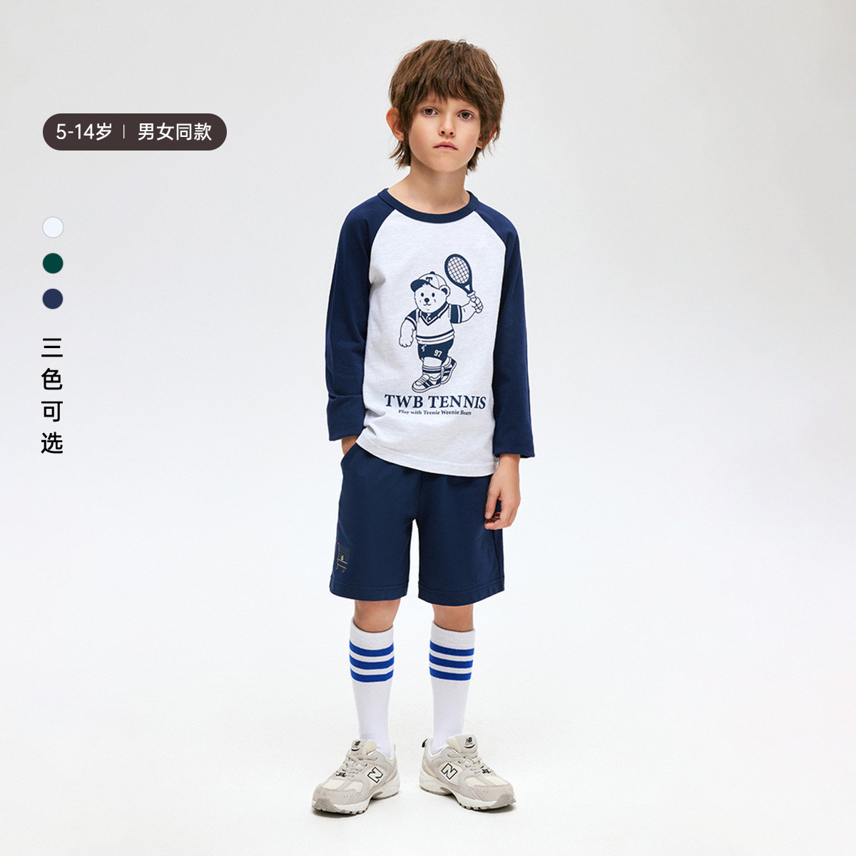 小熊童装春秋款男女童撞色插肩长袖T恤 914433