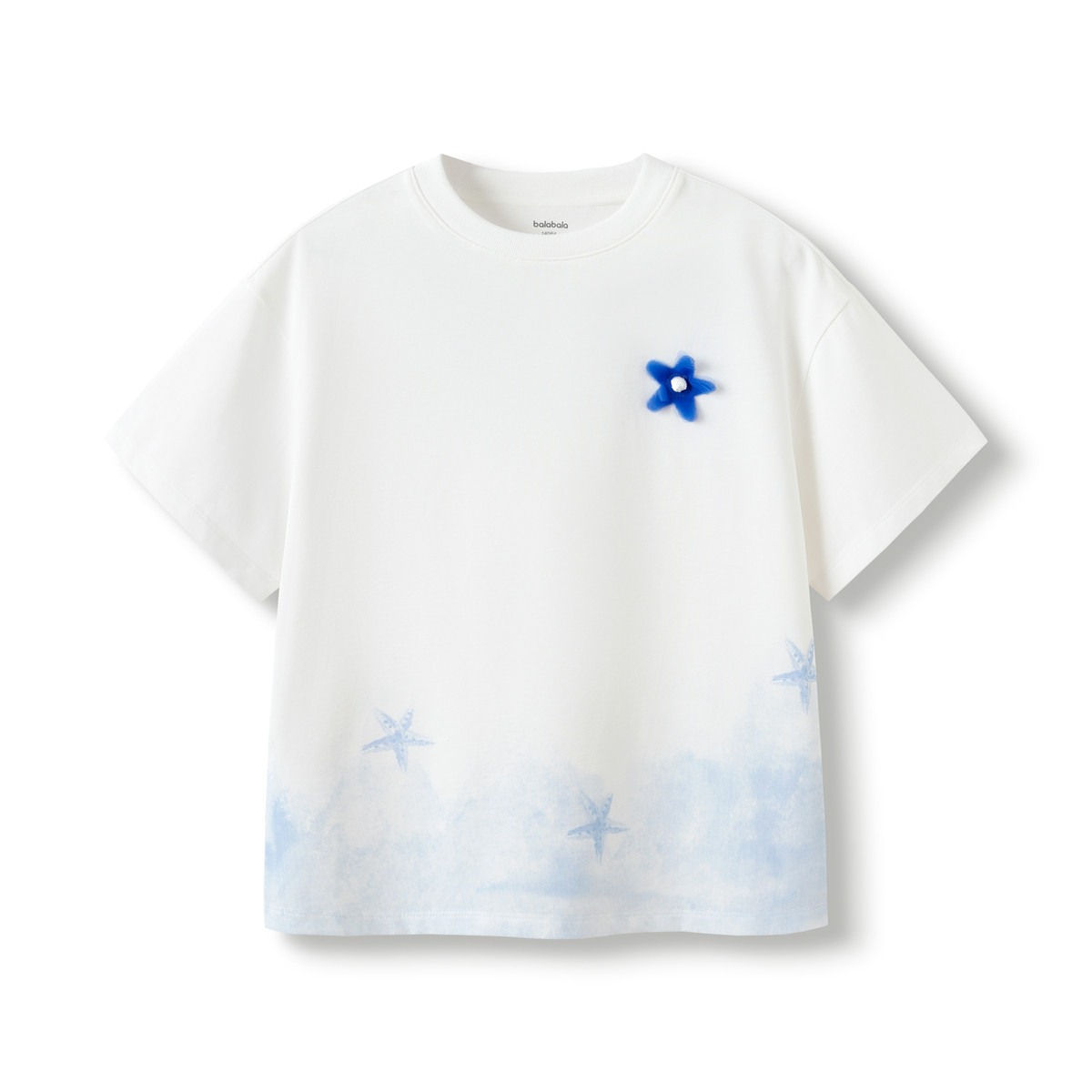 巴拉巴拉儿童短袖女童t恤夏装中大童波浪边飞袖甜美印花上衣时尚 804165