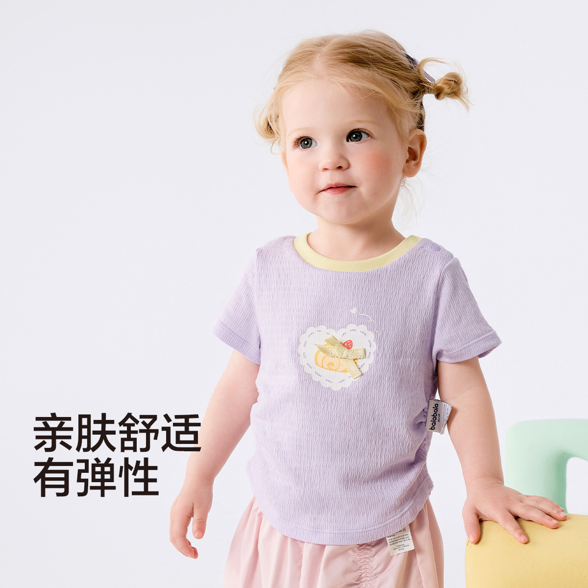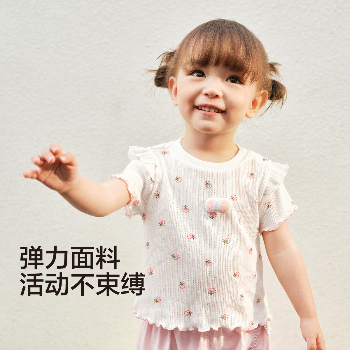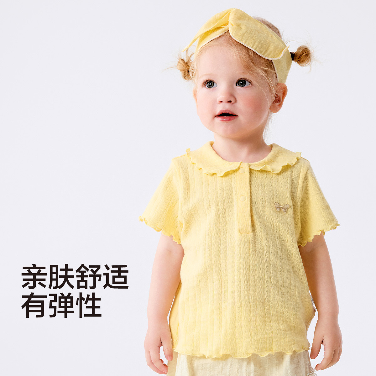 弹力透气宝宝短袖T恤婴儿女童夏装薄款上衣2025新款甜美时尚 139653