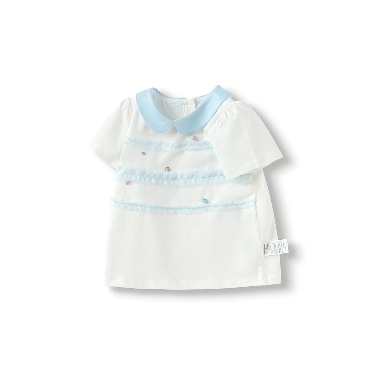 巴拉巴拉童装儿童T恤女童短袖上衣可爱娃娃领夏装撞色网纱甜美潮 150725