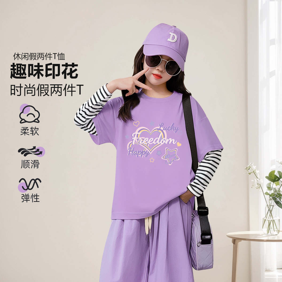 【亲肤柔软&假两件T恤】2025春季女童百搭假两件T恤上衣薄 676819