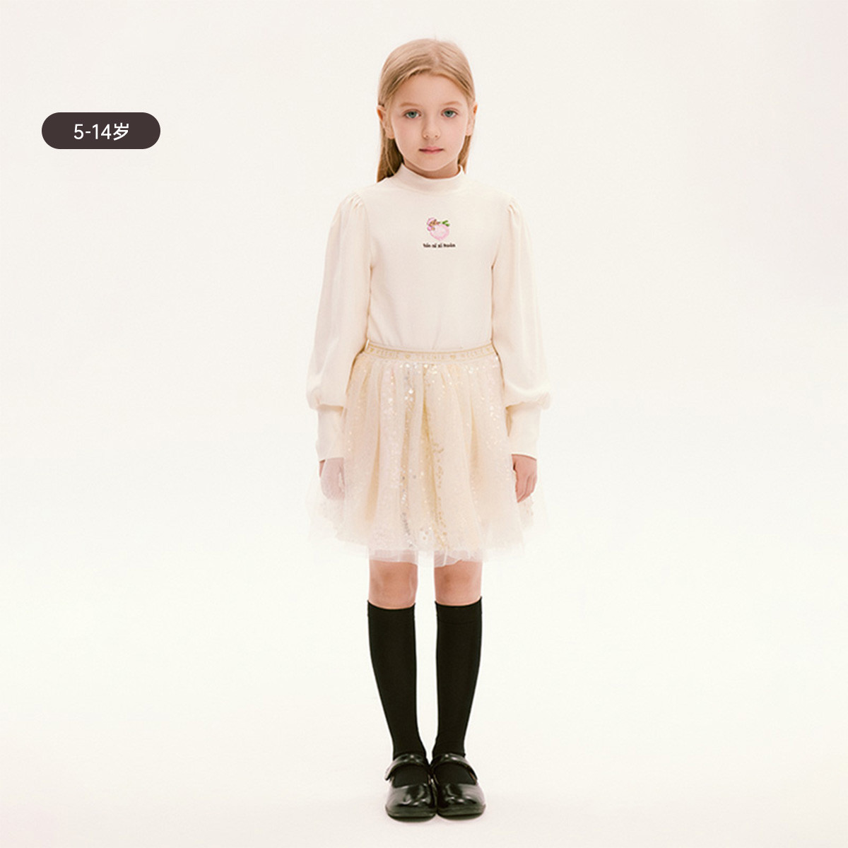 小熊童装春款女童小高领泡泡袖长袖打底T恤 872129
