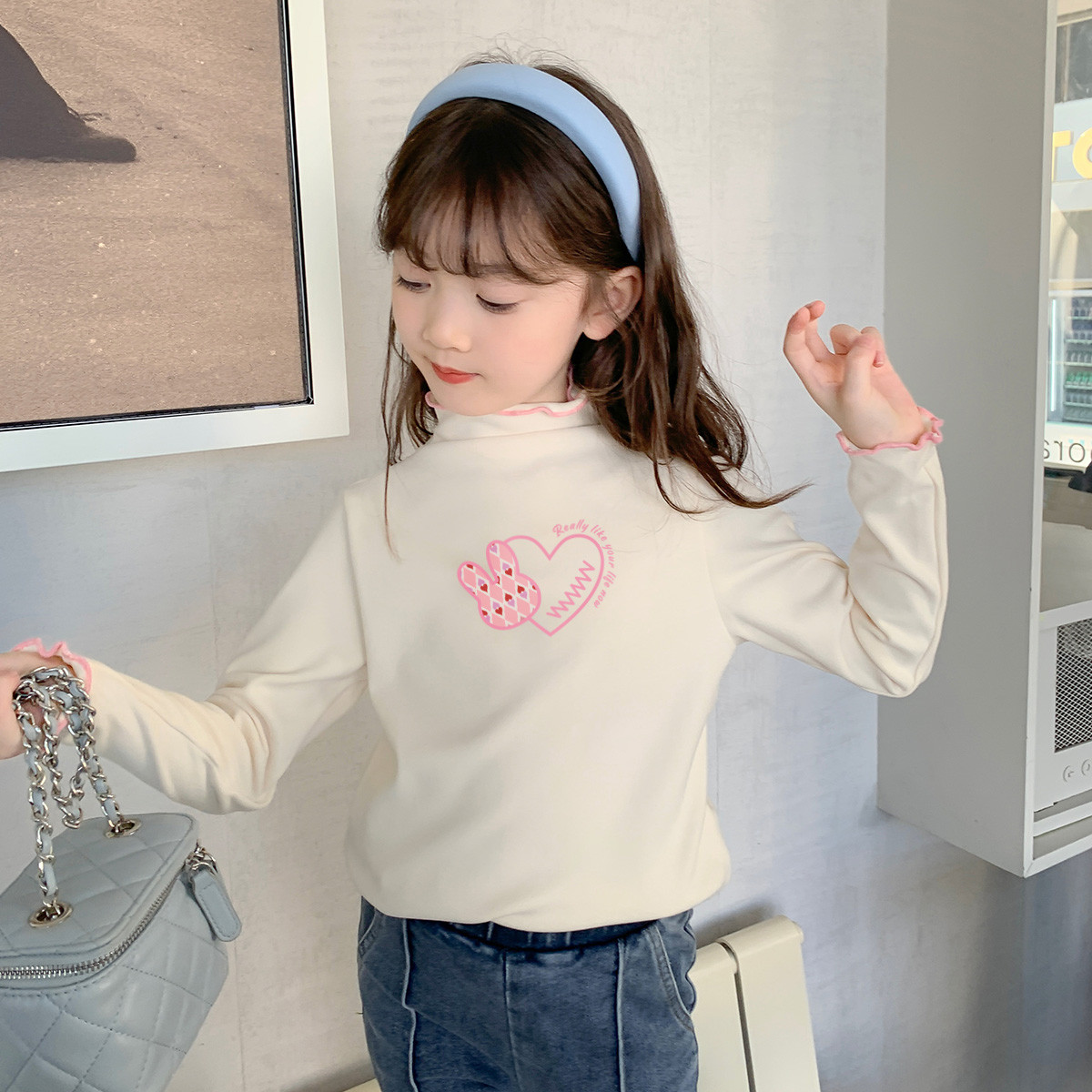 女童长袖春秋款时尚洋气女孩薄绒长袖打底衫中大童半高领儿童上衣 134607