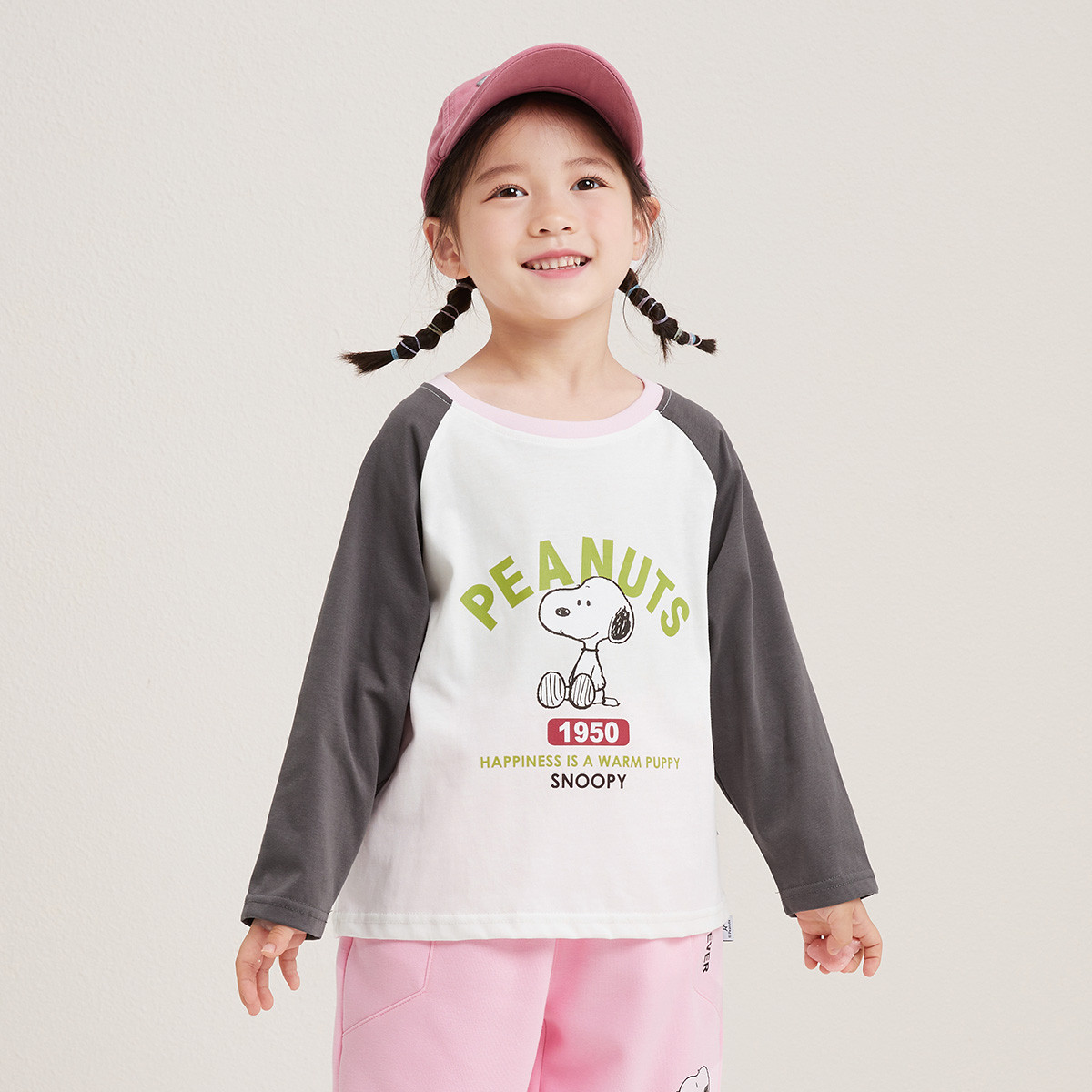 小熊童装春秋款男女童撞色插肩长袖T恤 748417