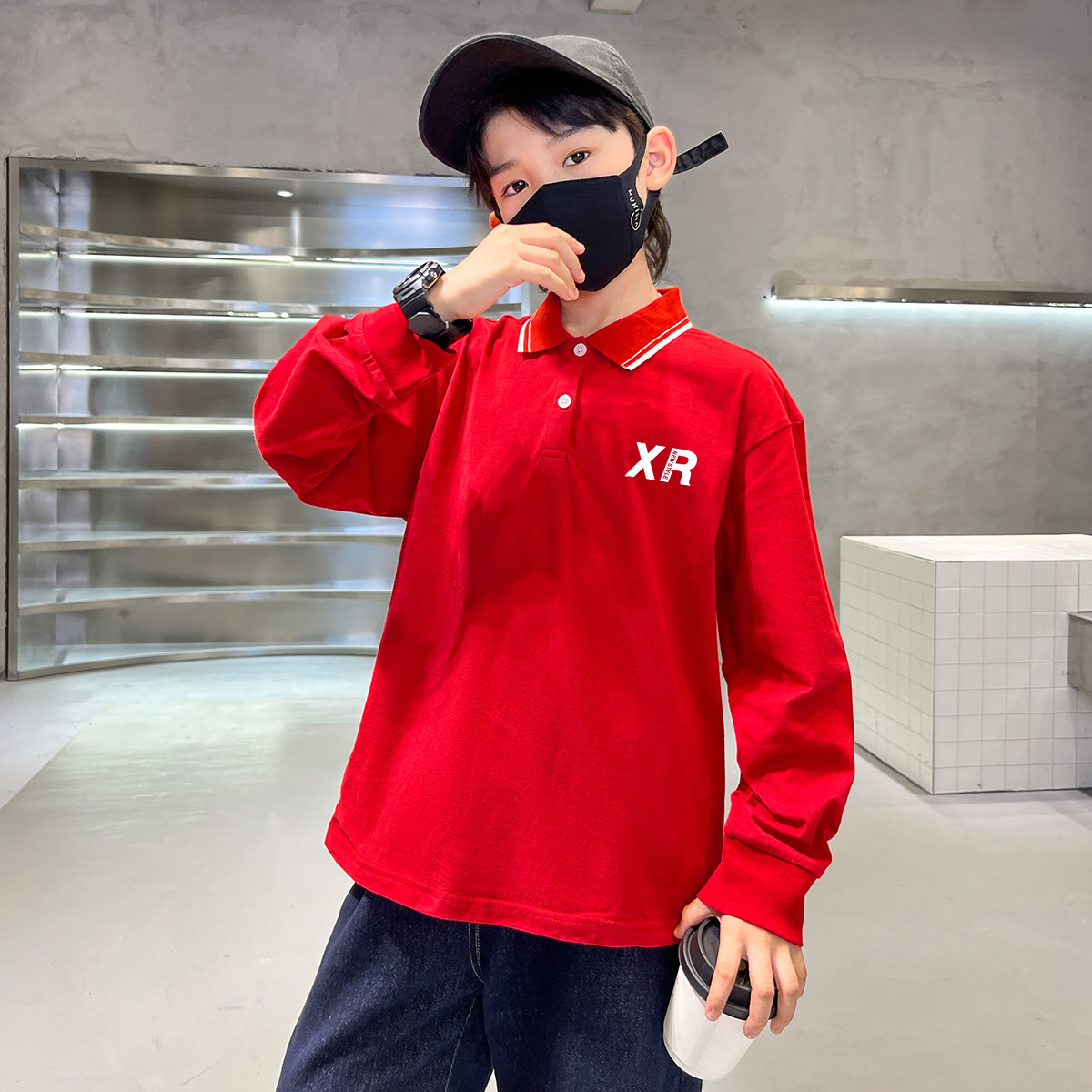 柔软舒适男童长袖POLO衫儿童翻领T恤中大童春秋款打底衫上衣 687183