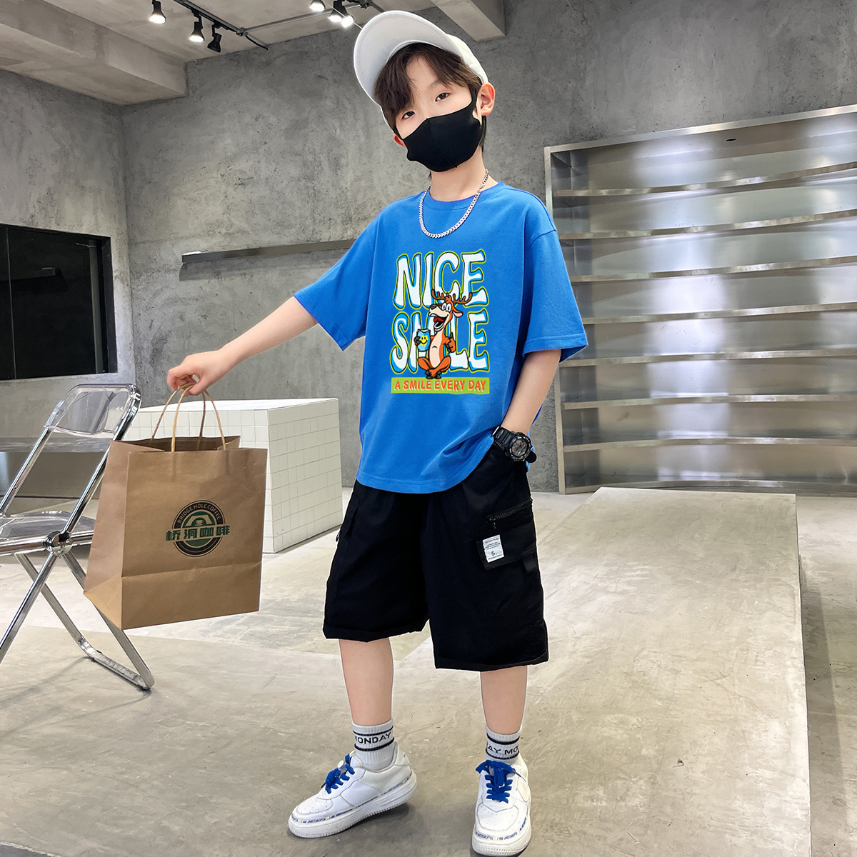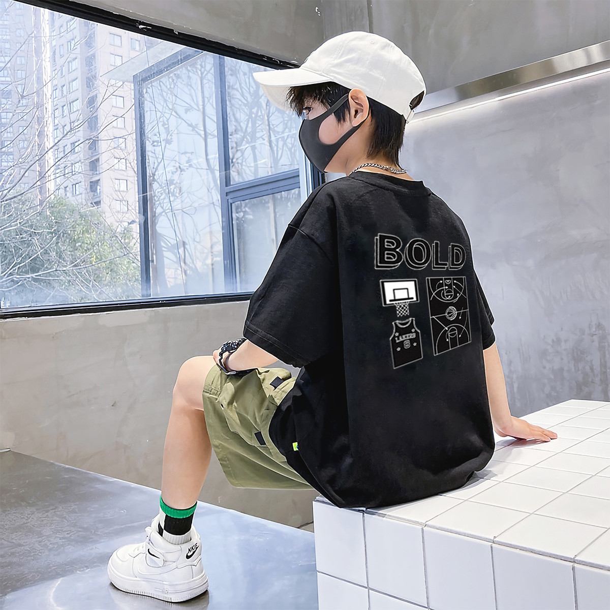 2025夏季男童纯棉短袖T恤时尚潮流中大童休闲宽松运动上衣 353119