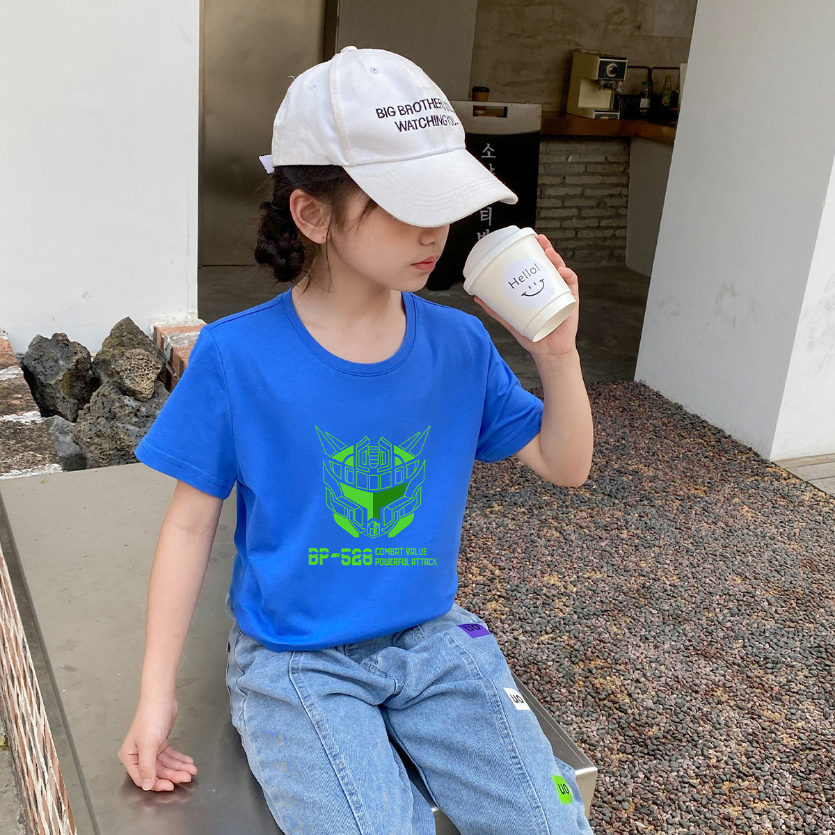 儿童纯棉T恤春秋时尚男童女童短袖衫中大童吸汗落肩短袖T恤上衣 550351