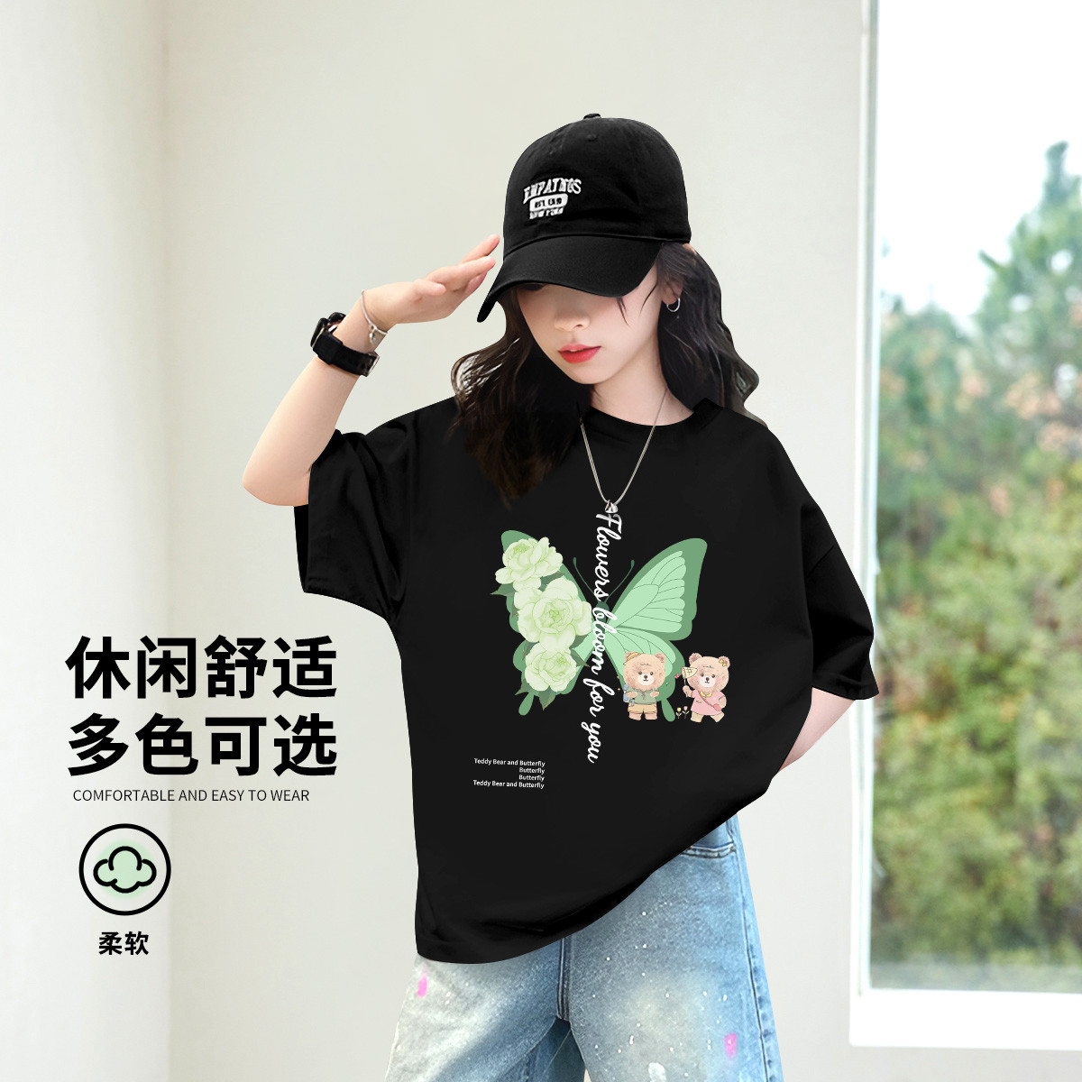 可爱女童清凉上衣2024春秋甜美卡通蝴蝶休闲短袖T恤中大童装 571215