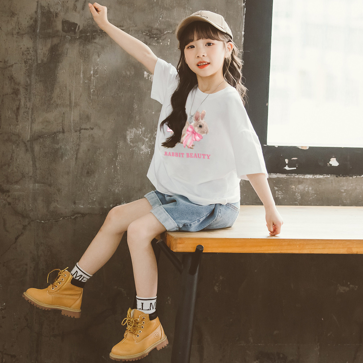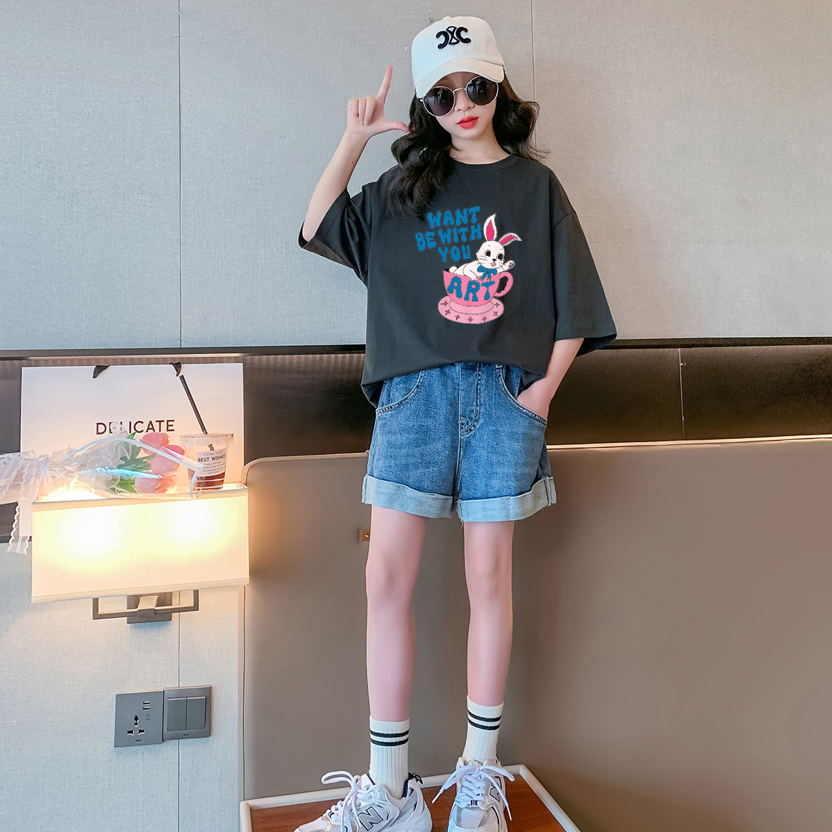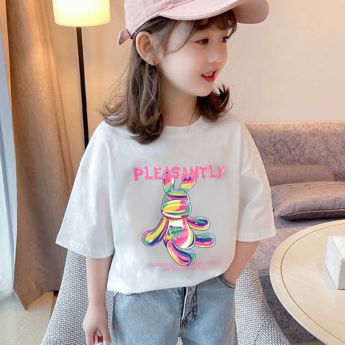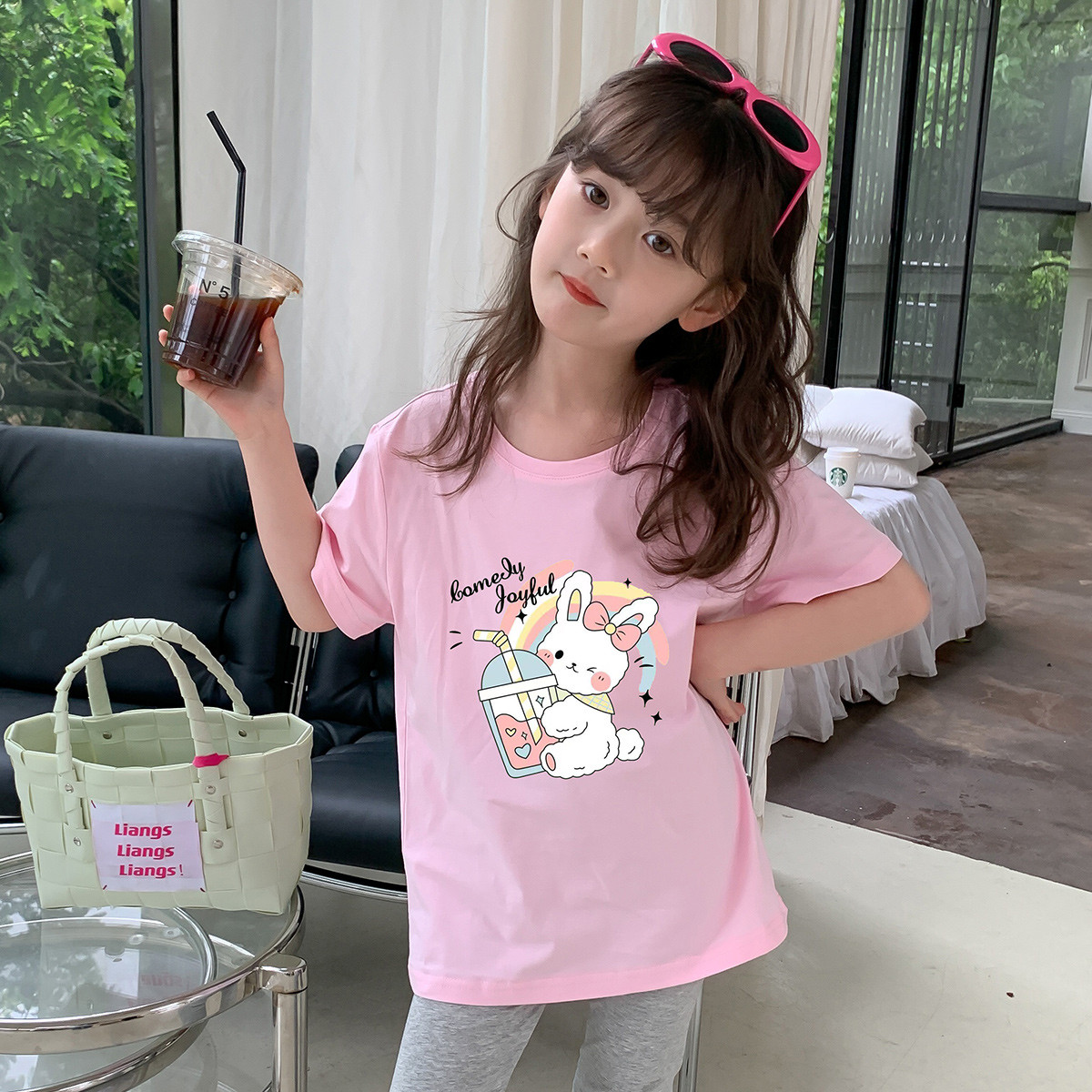 【柔软舒适】女童T恤春夏时尚女童短袖衫中大童百搭吸汗短袖上衣 458703