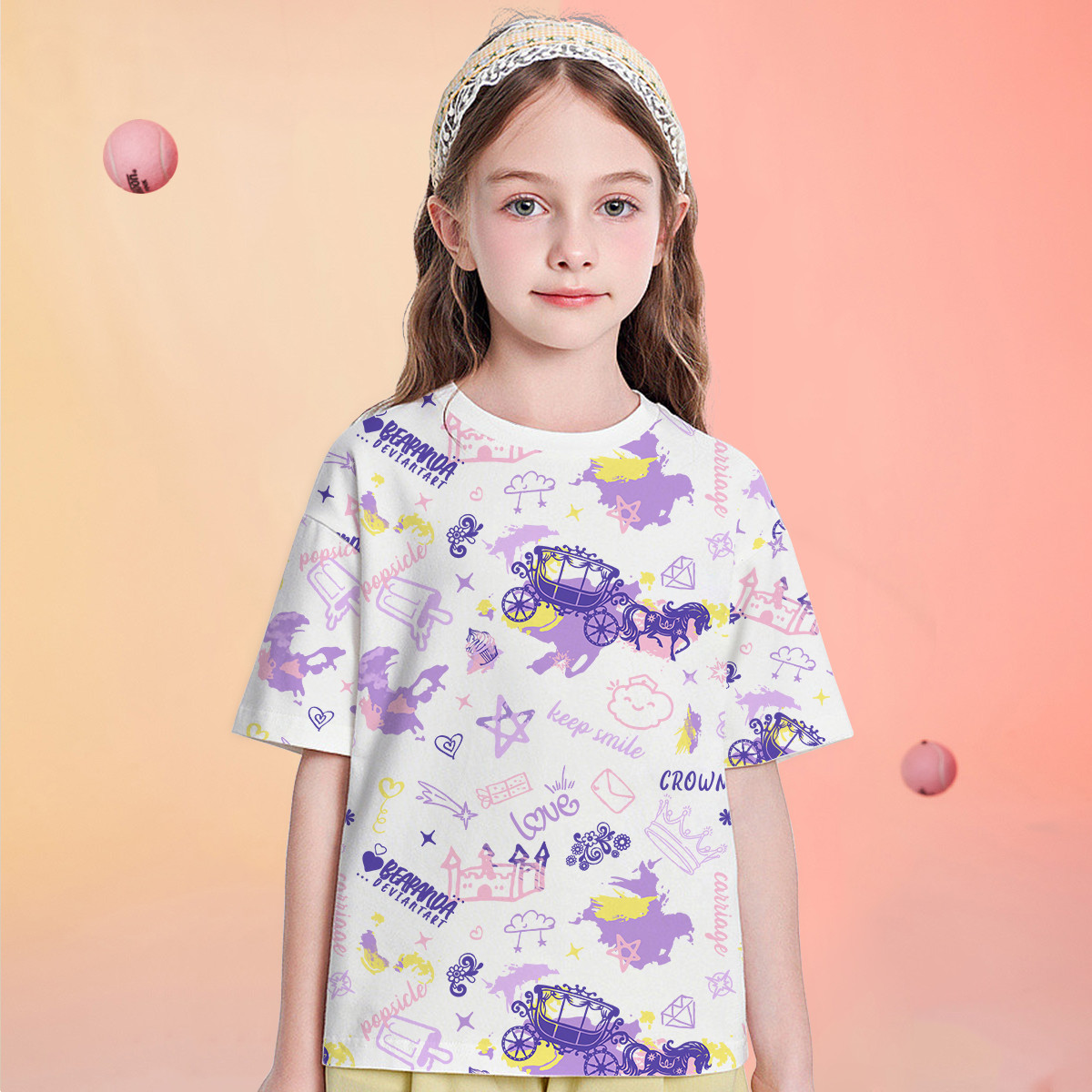 夏季女童纯棉满印短袖T恤儿童亲肤透气时尚甜美上衣 187663