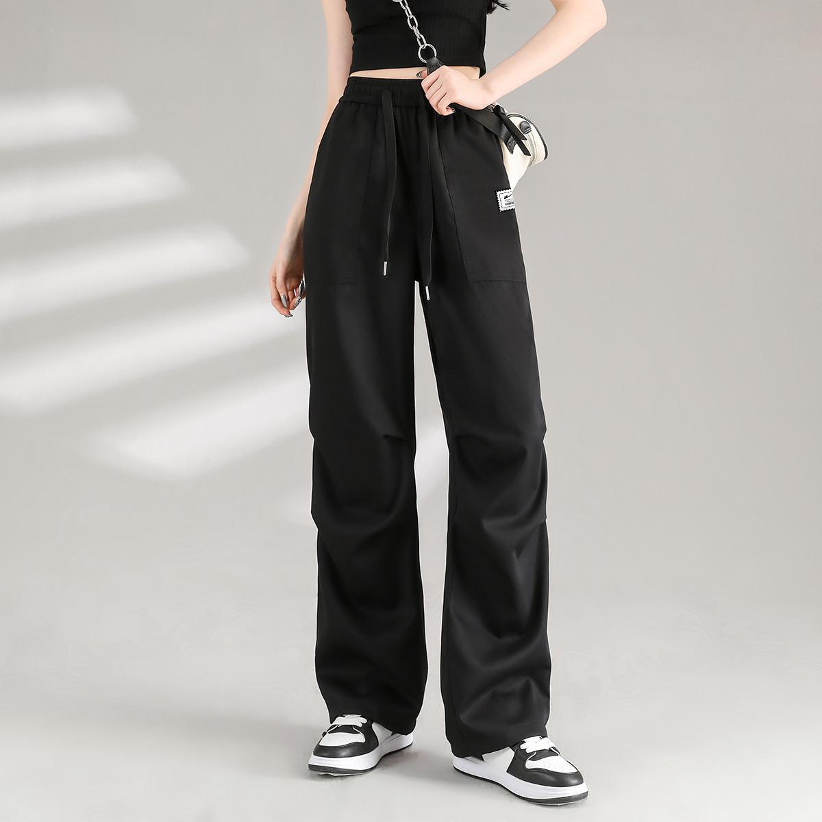 抽绳工装裤女春夏季小个子高腰宽松显瘦时尚直筒休闲阔腿运动裤女 330003