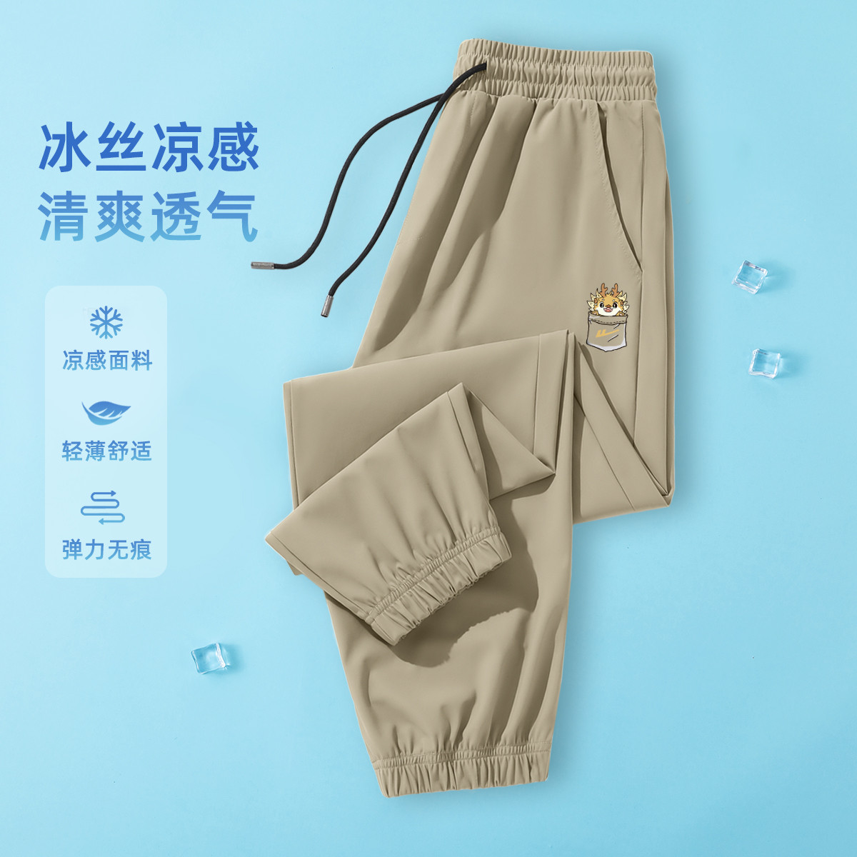 【冰感凉爽】夏季男士休闲裤冰丝凉感透气薄款空调长裤运动束脚裤 586195
