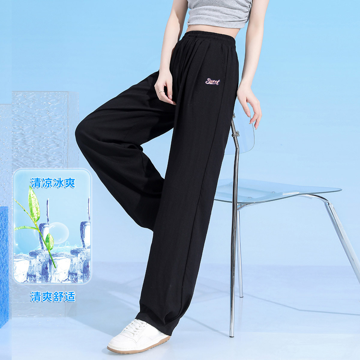 春夏款女士休闲显瘦女裤纯色百搭气质垂感直筒裤女裤子女运动裤 313619