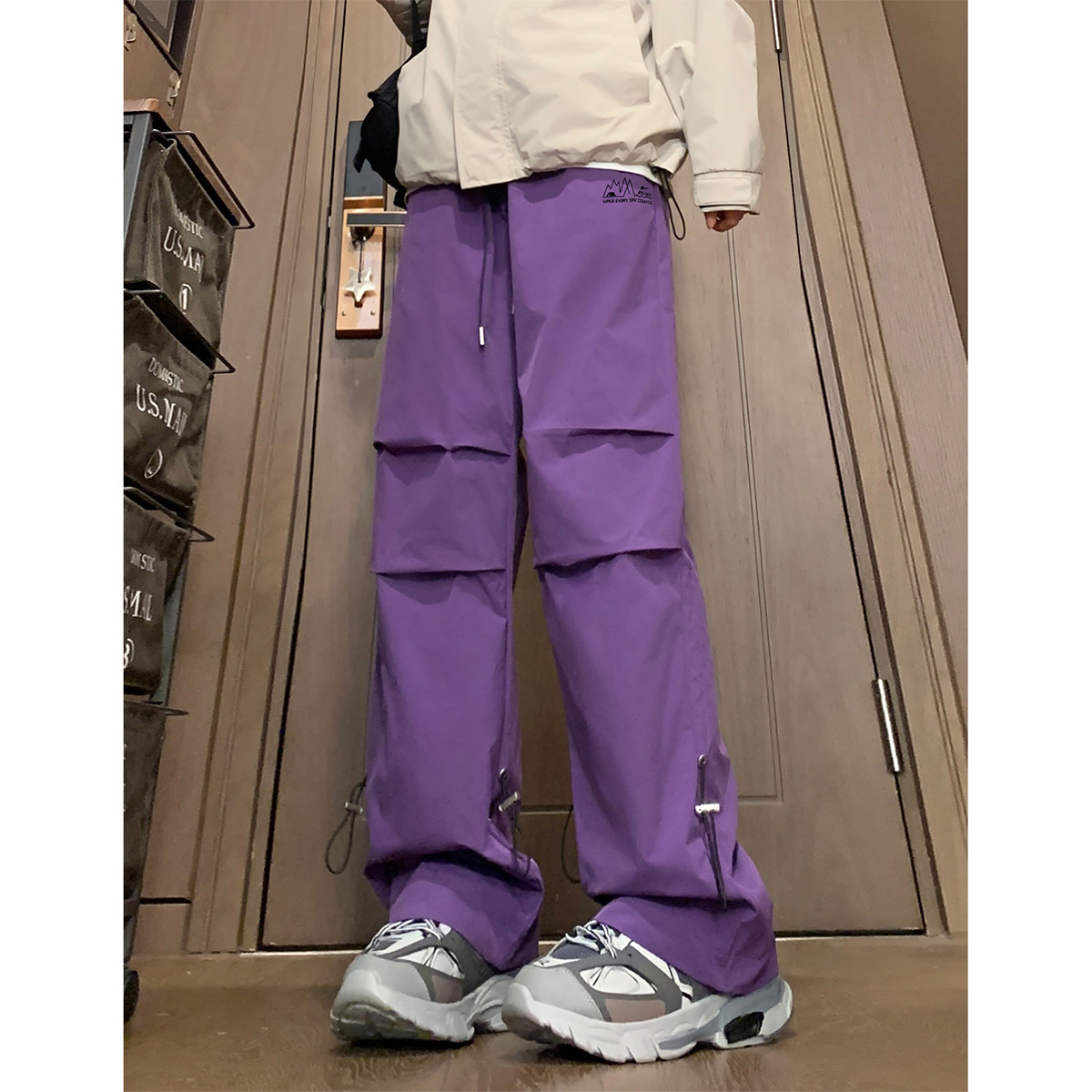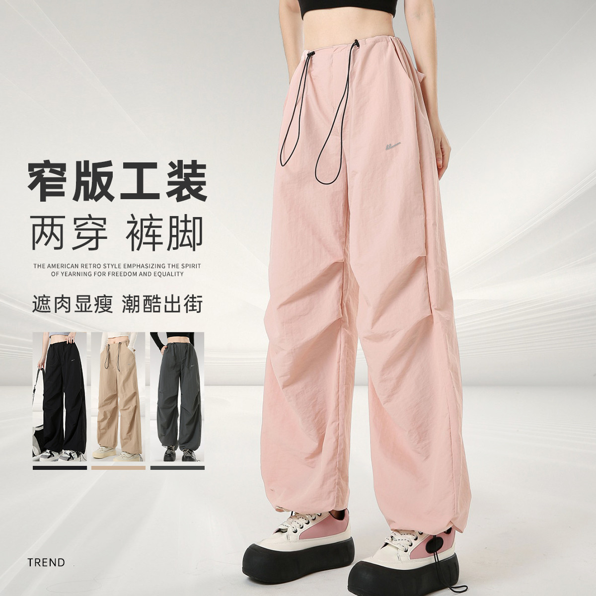 【美式工装裤】运动裤女宽松降落伞裤低腰抽绳潮流褶皱直筒阔腿裤 694995