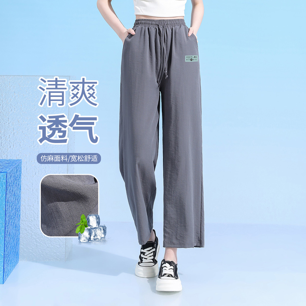 【九分薄款阔腿裤】夏装轻薄透气冰丝无感直筒裤宽松显瘦休闲裤 857555