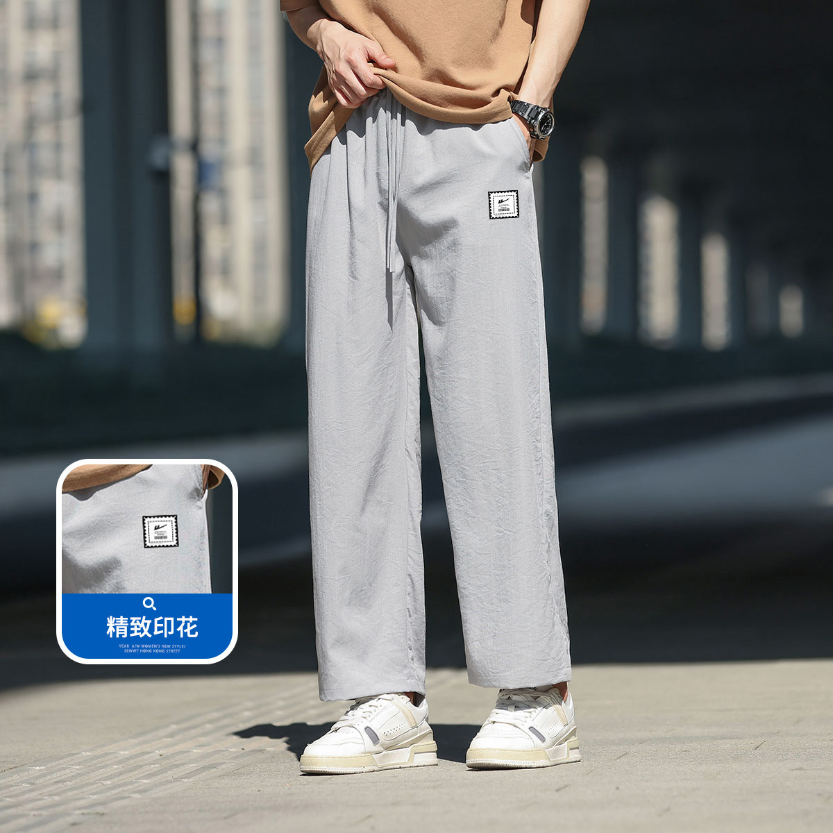 夏季清爽透气九分裤男宽松时尚青少年纯色印花九分直筒裤男薄夏 873939