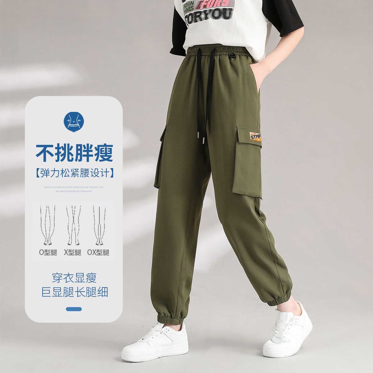 女式工装裤宽松显瘦运动裤显瘦显高束脚裤百搭女款长裤美式休闲裤 184659