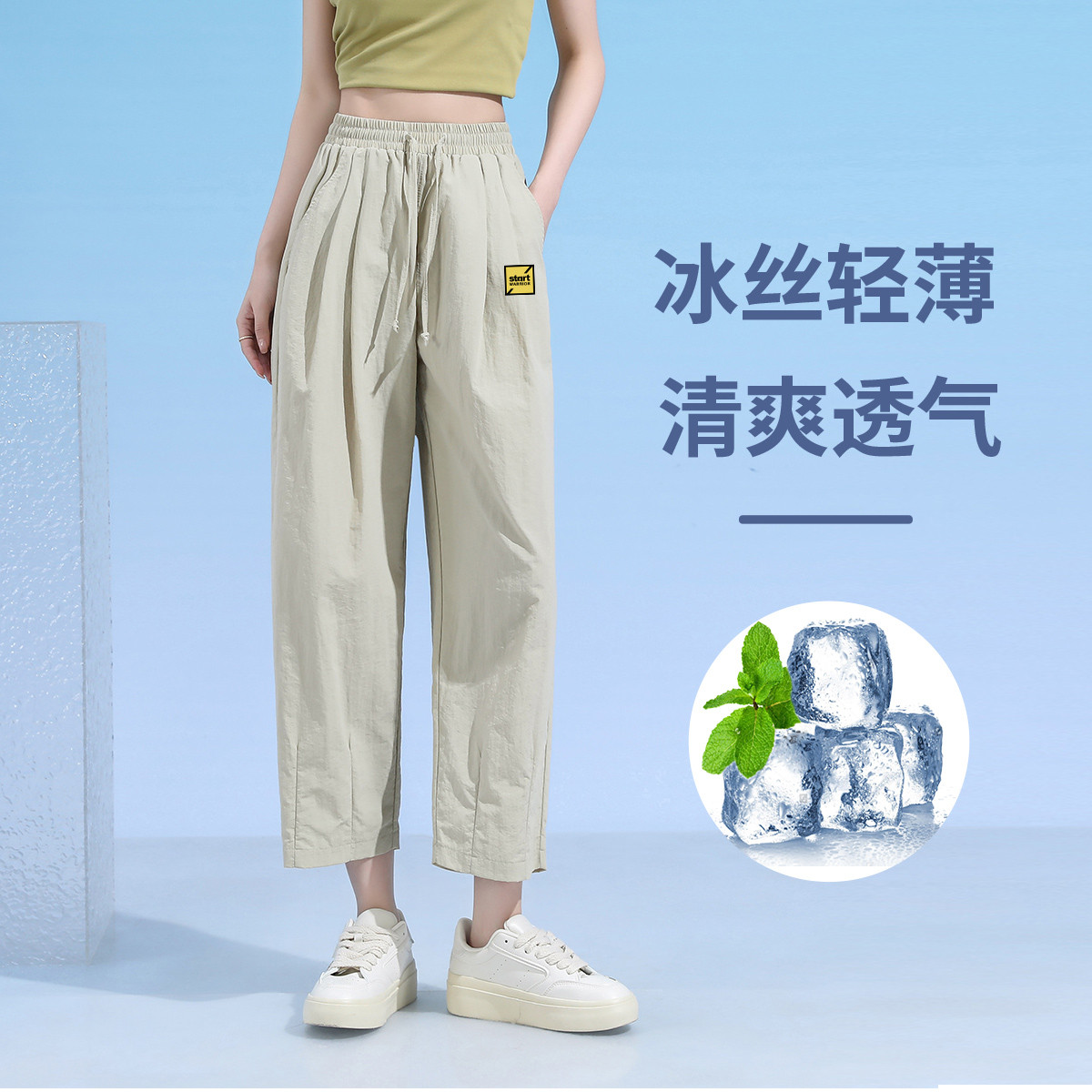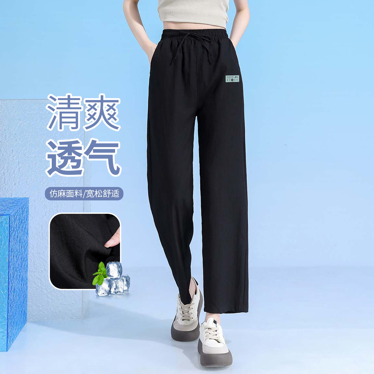 【九分薄款阔腿裤】夏装轻薄透气冰丝无感直筒裤宽松显瘦休闲裤 837075