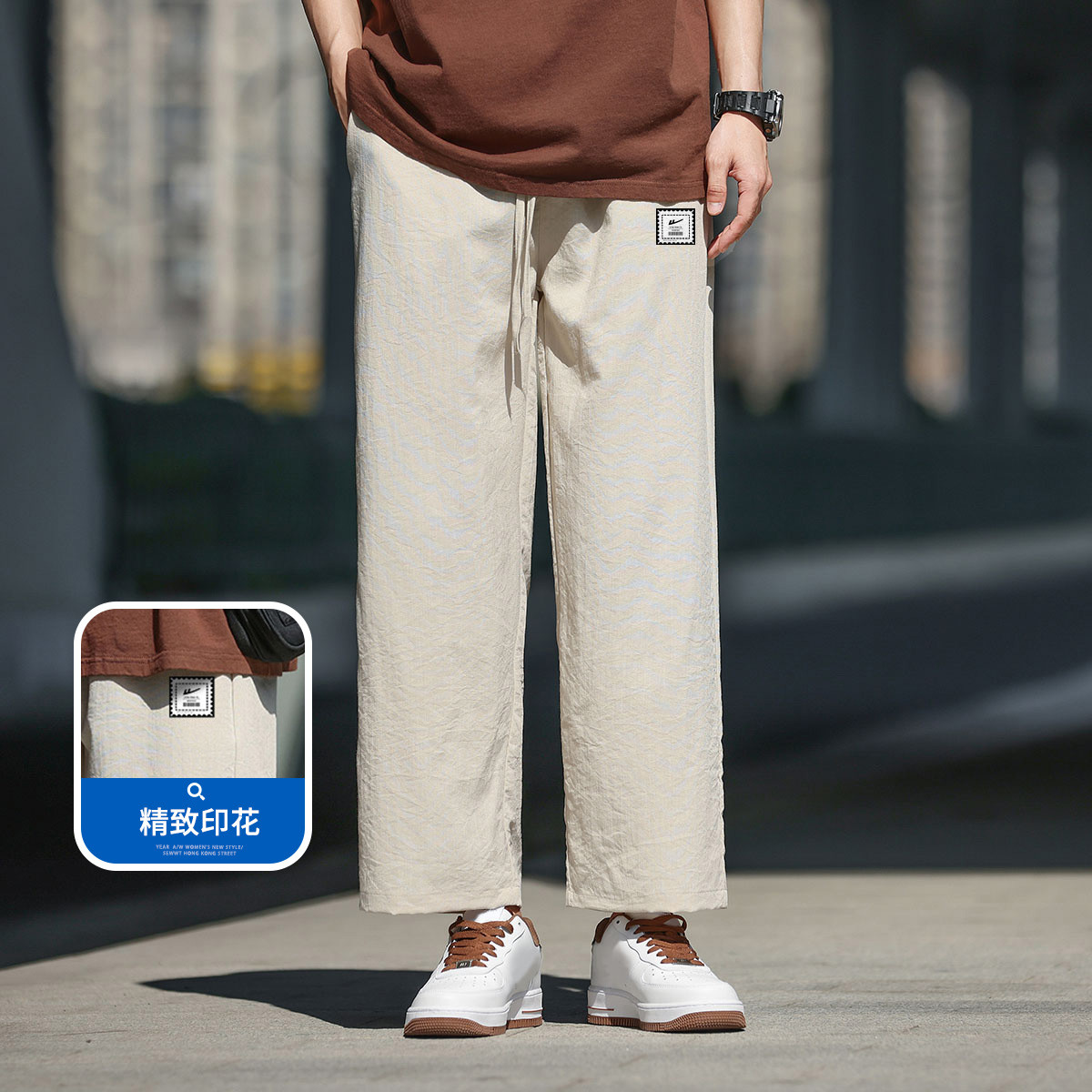 夏季清爽透气九分裤男宽松时尚青少年纯色印花九分直筒裤男薄夏 782099