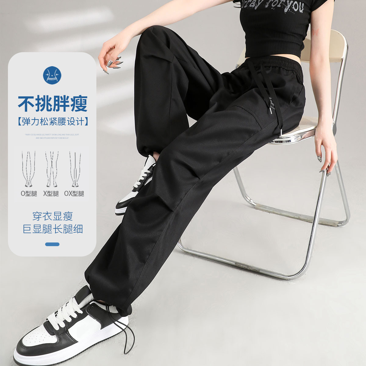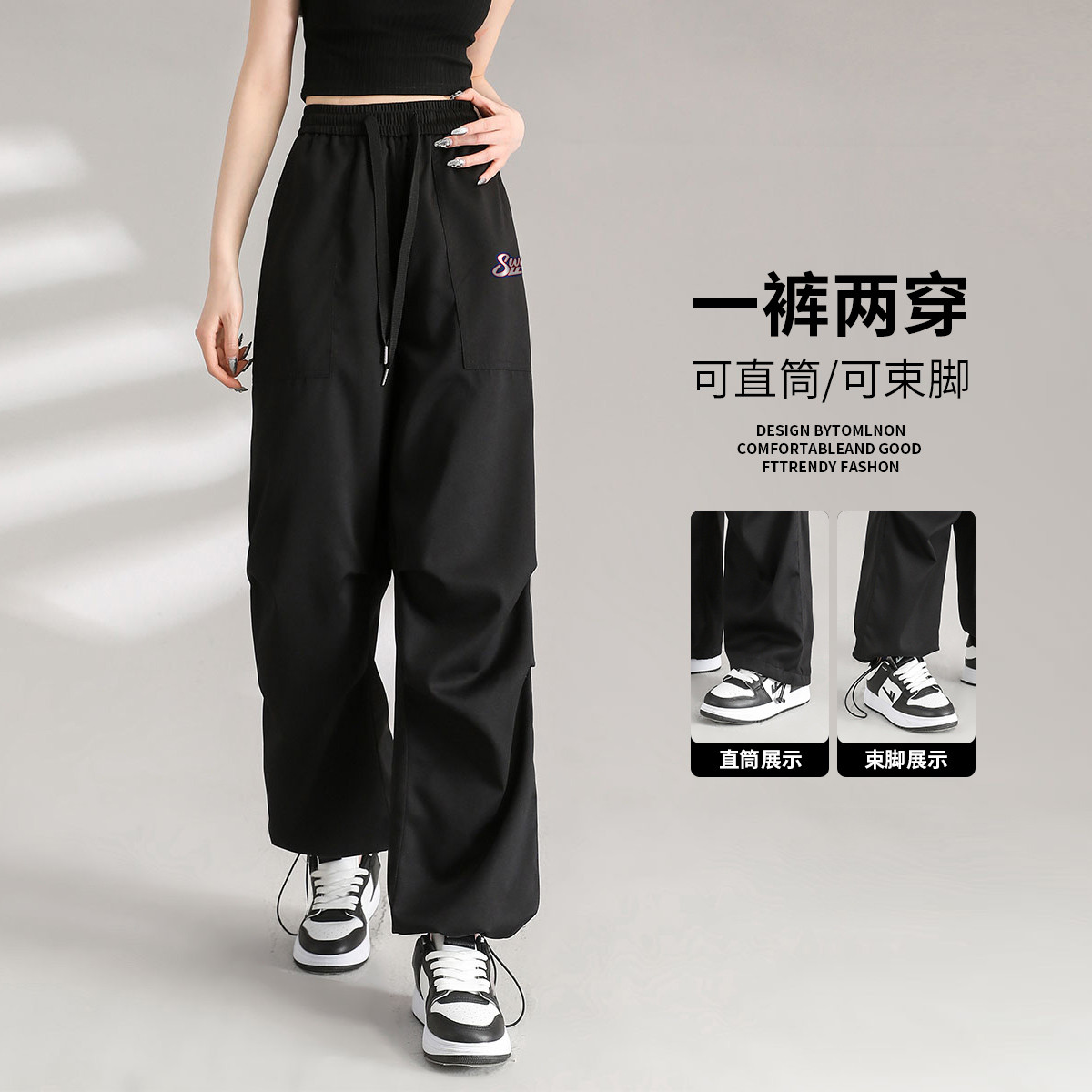 【直筒束脚两穿】女式工装裤宽松显瘦显高运动裤女长裤美式休闲裤 096147