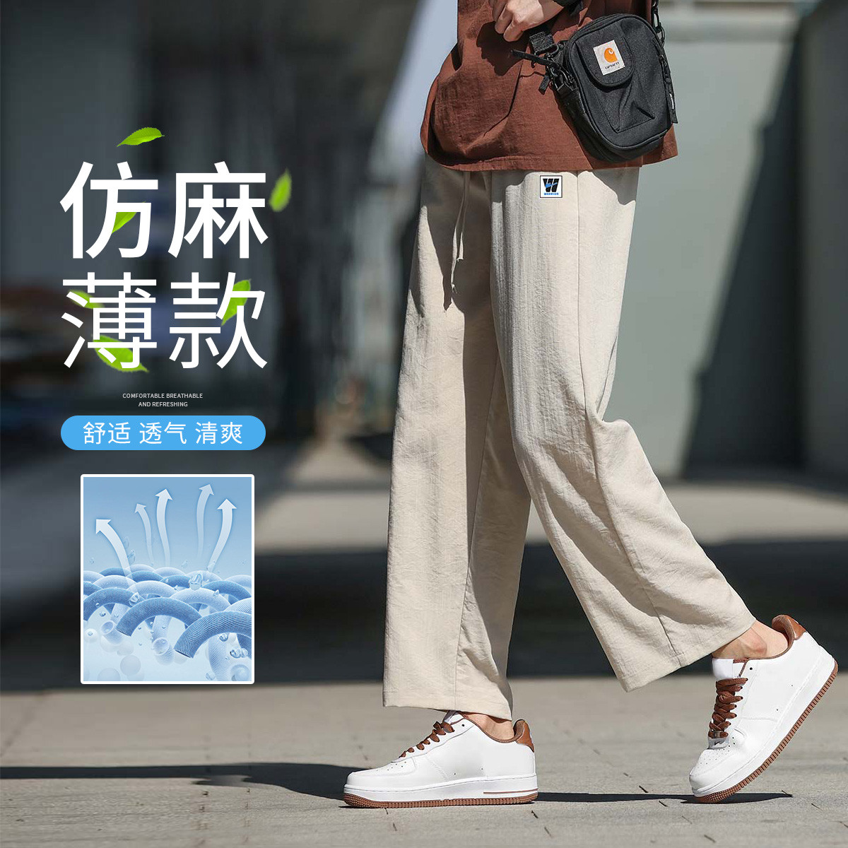 【薄款透气】阔腿拖地长裤男夏款宽松运动裤舒适休闲直筒裤子男 746643