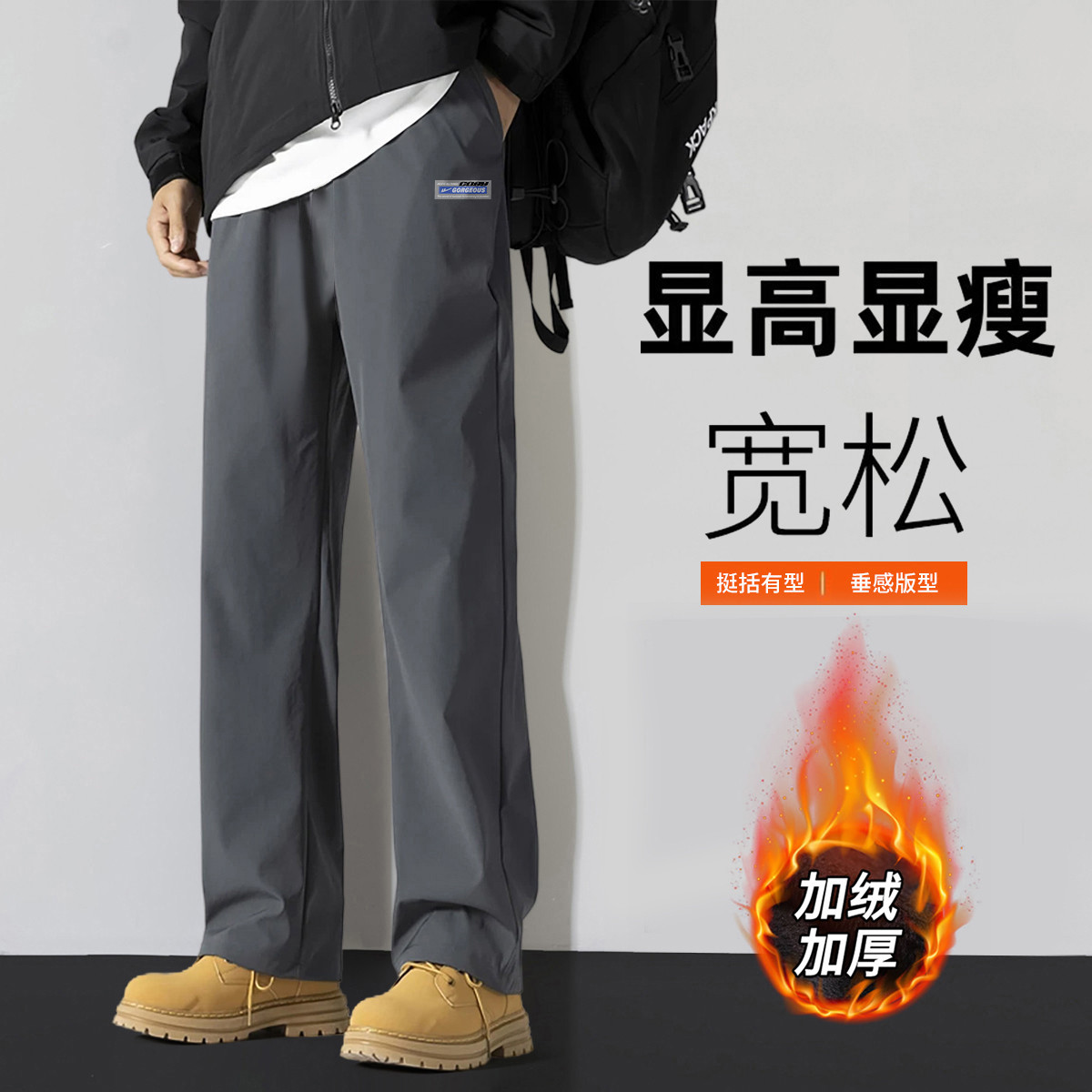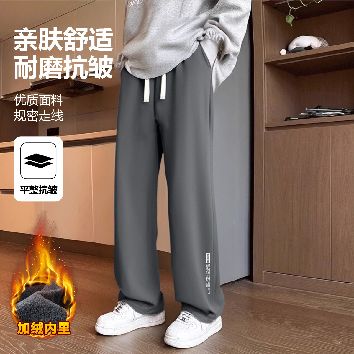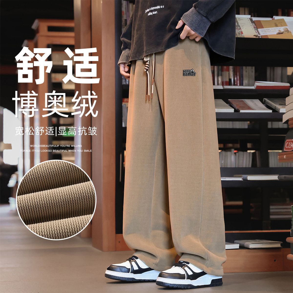 博奥绒裤子男潮牌垂感直筒宽松阔腿裤美式复古男裤休闲运动裤 962579