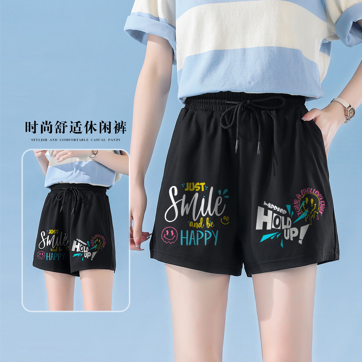 轻薄透气女士运动短裤女士舒适宽松时尚百搭印花直筒五分休闲中裤 077651