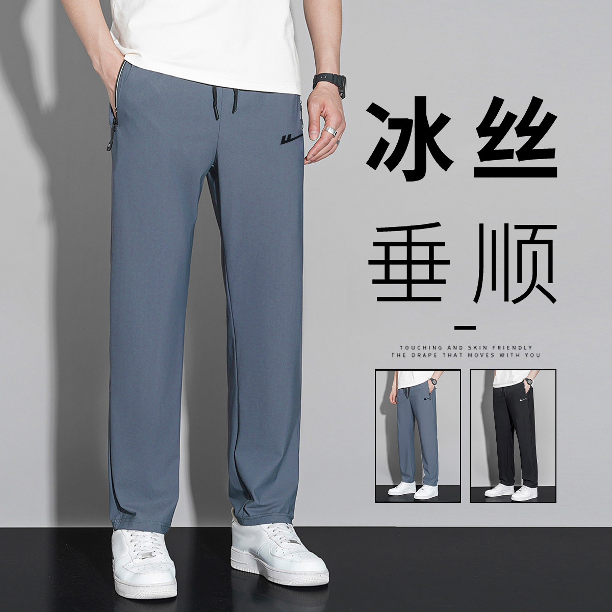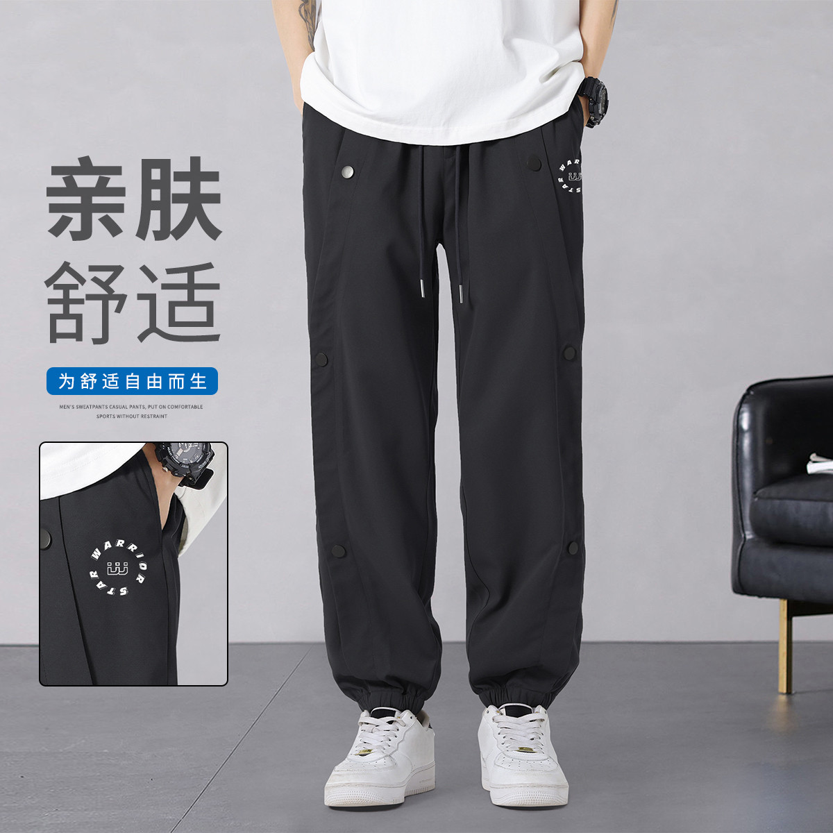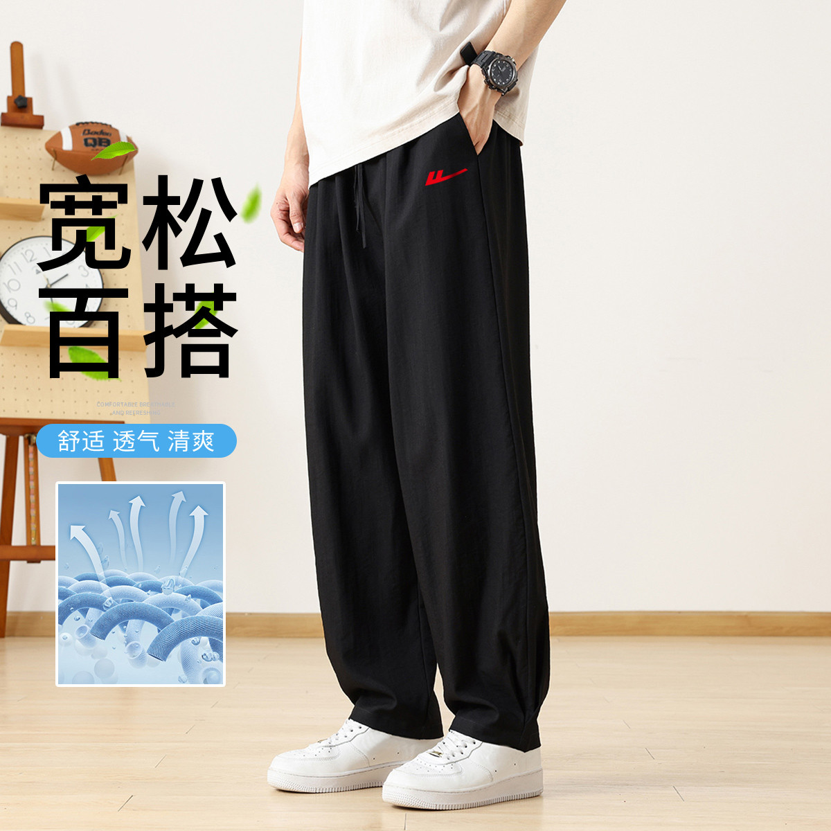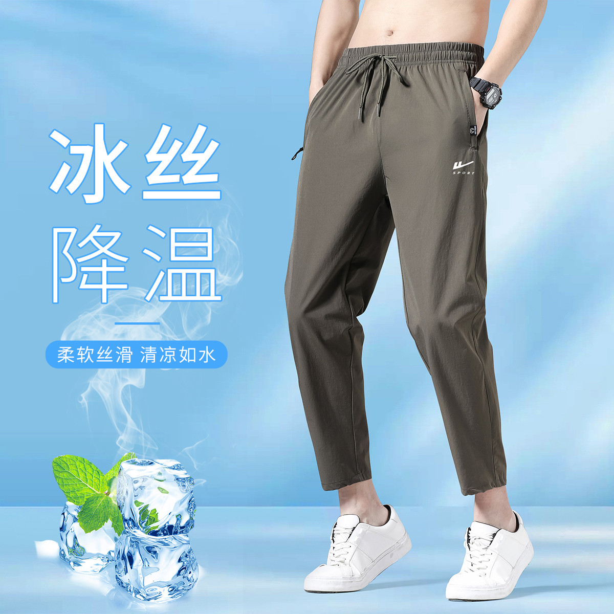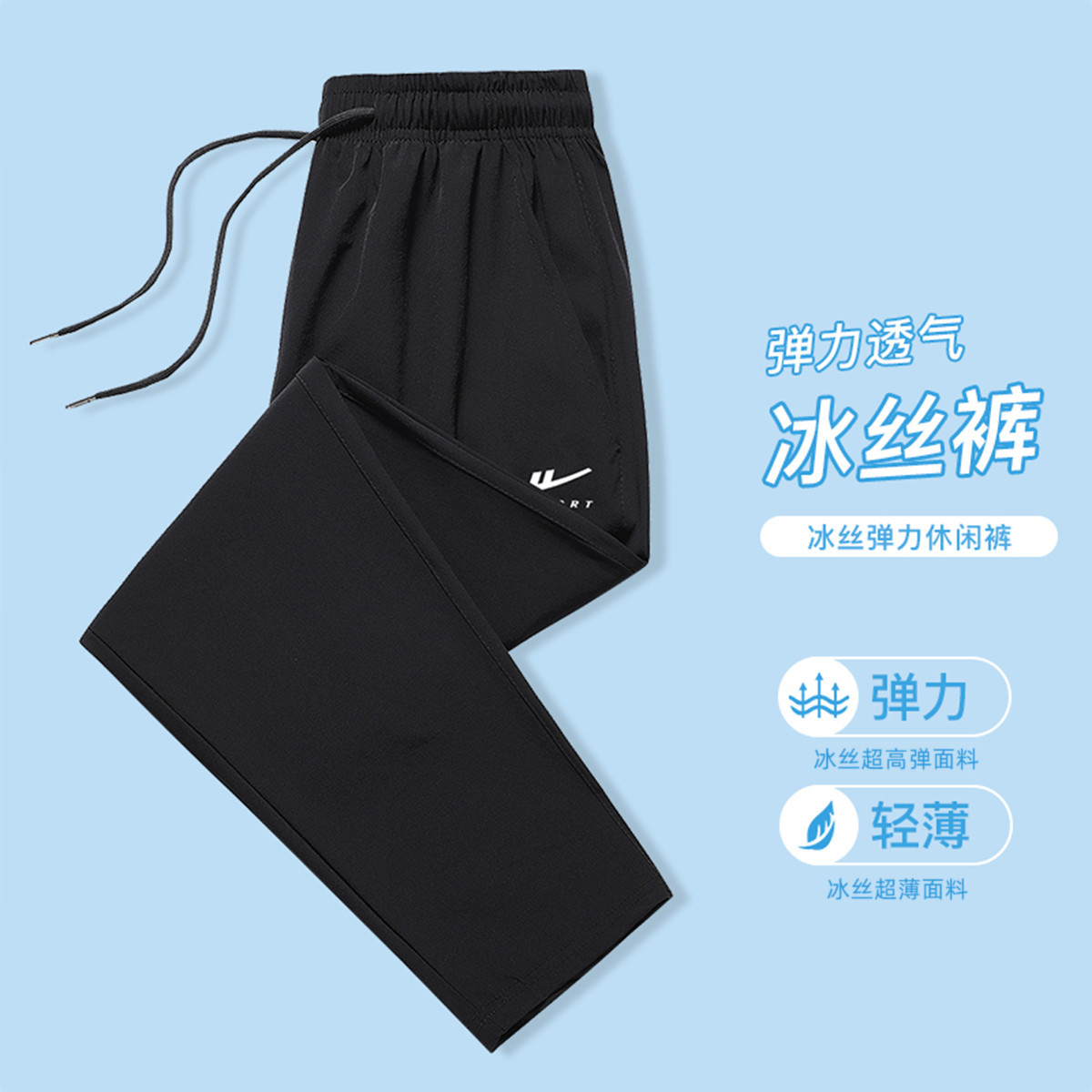 【冰感透气】夏季男士冰丝薄款束脚裤美式休闲男生户外运动休闲裤 582099