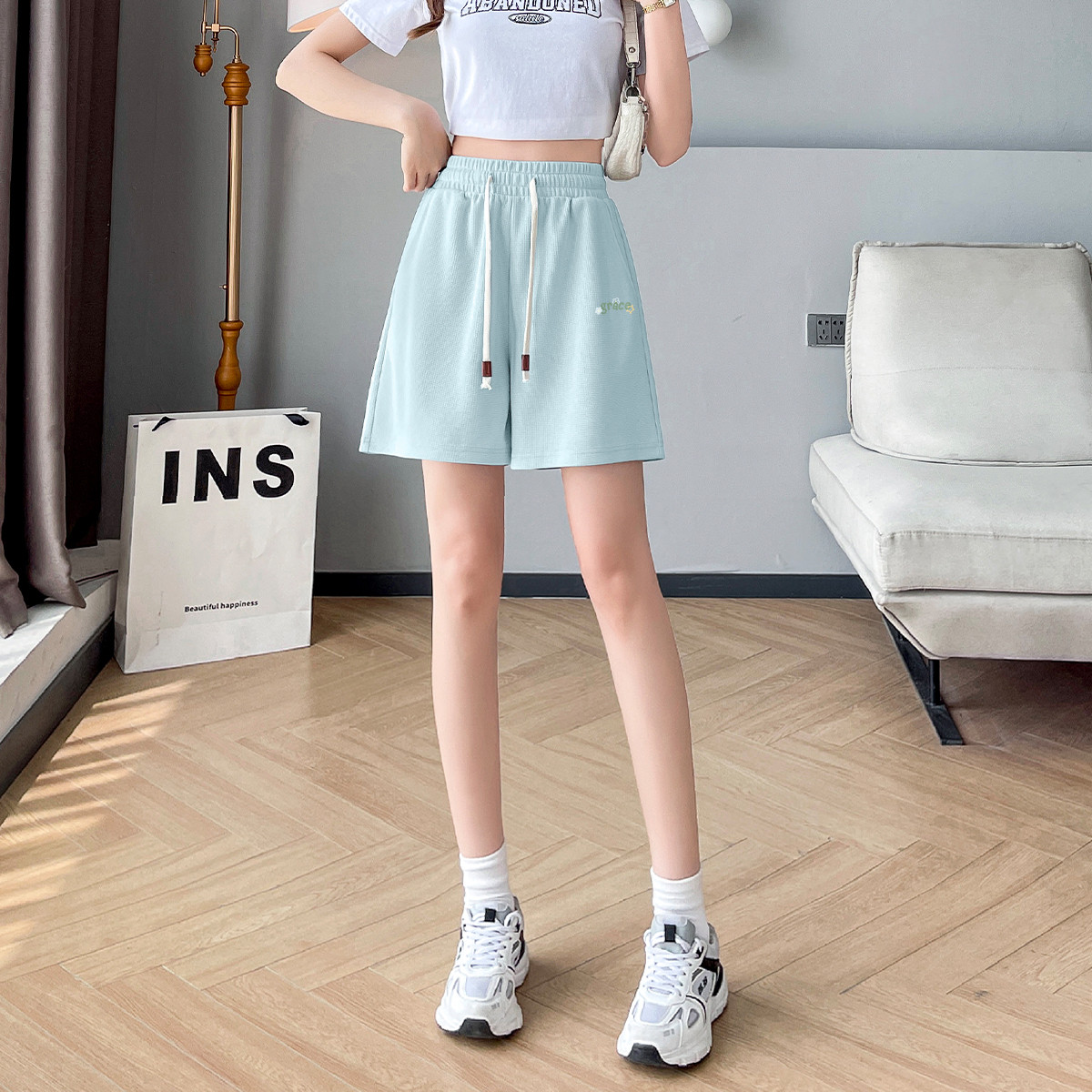 【女装】夏季女式华夫格休闲短裤宽松三分裤通勤百搭阔腿潮 209107