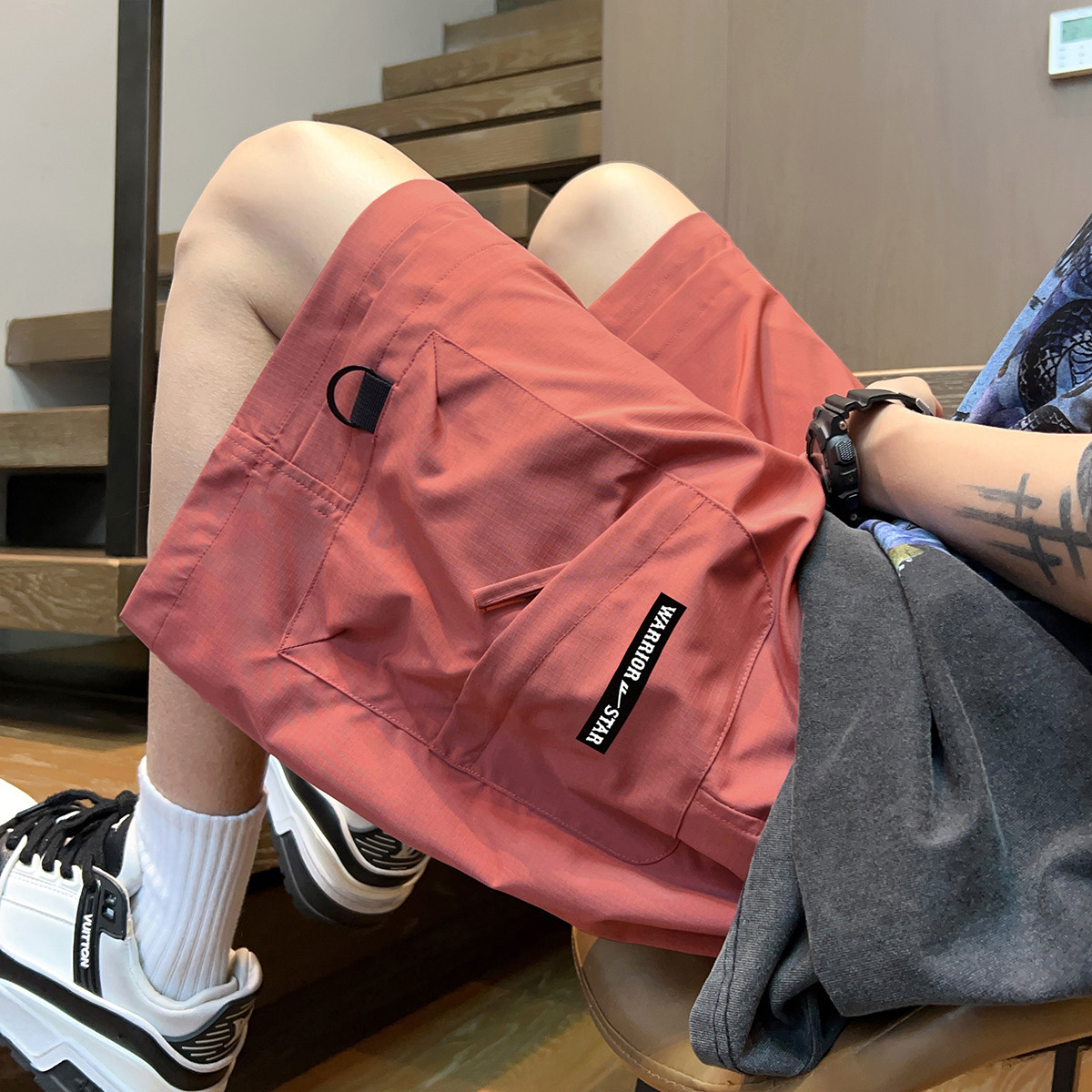 工装短裤男夏季轻薄冰丝运动裤休闲美式中裤男女款宽松五分裤子潮 598291