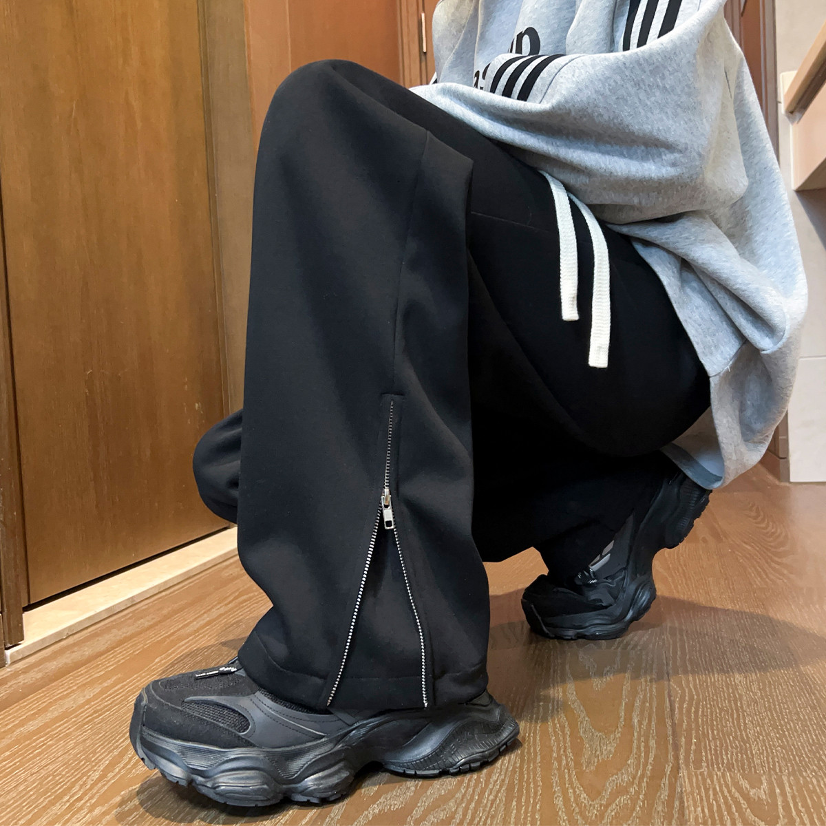 运动裤春秋季青少年男款潮流宽松百搭直筒裤青少年时尚抽绳休闲裤 072531