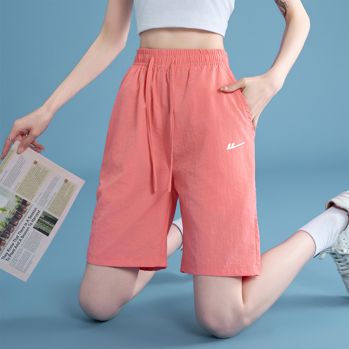 【缤彩多色】运动短裤女夏季冰丝外穿休闲中裤情侣健身宽松五分裤 360147