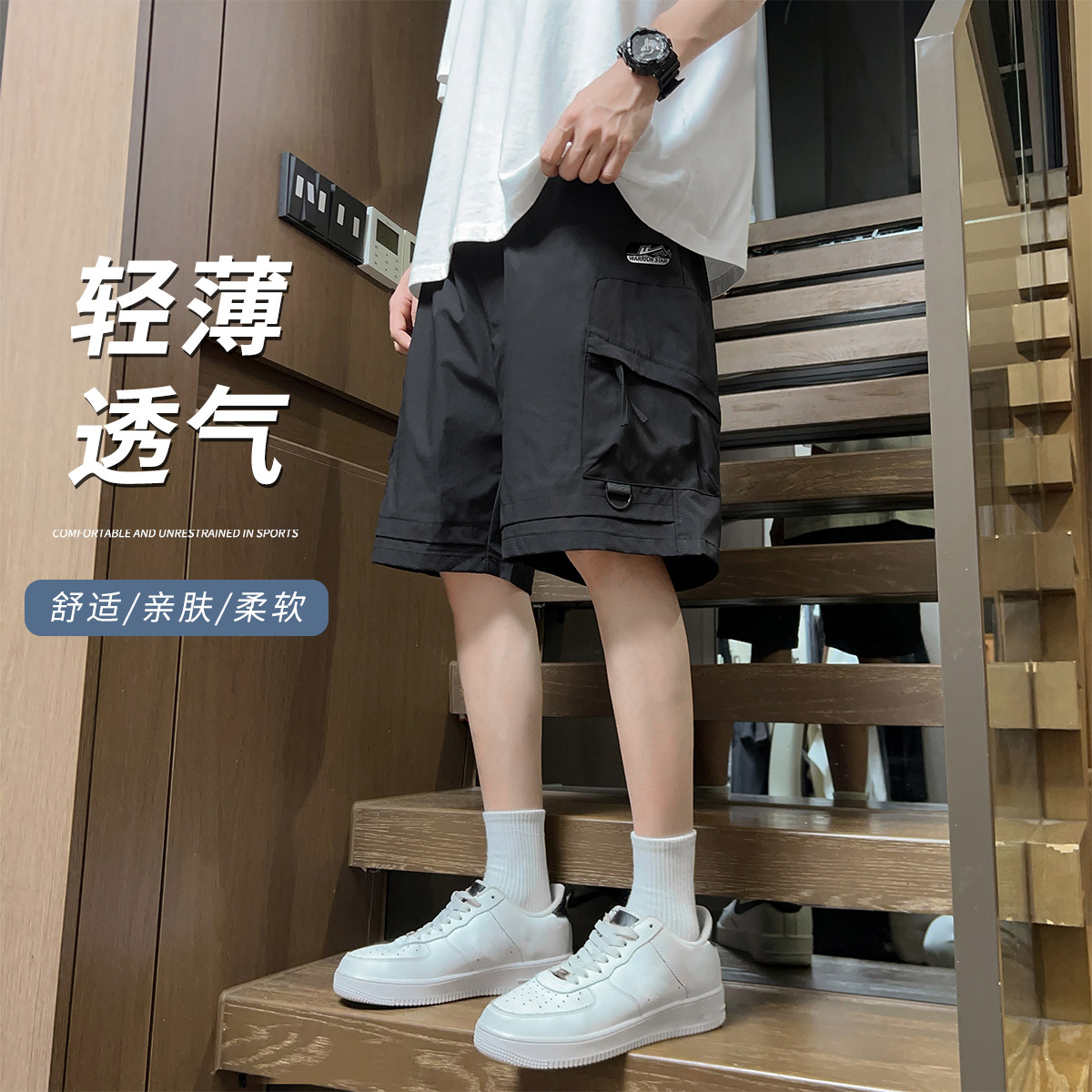 【休闲宽松五分裤】夏季男士运动裤轻盈裤子透气工装裤薄款短裤男 174483