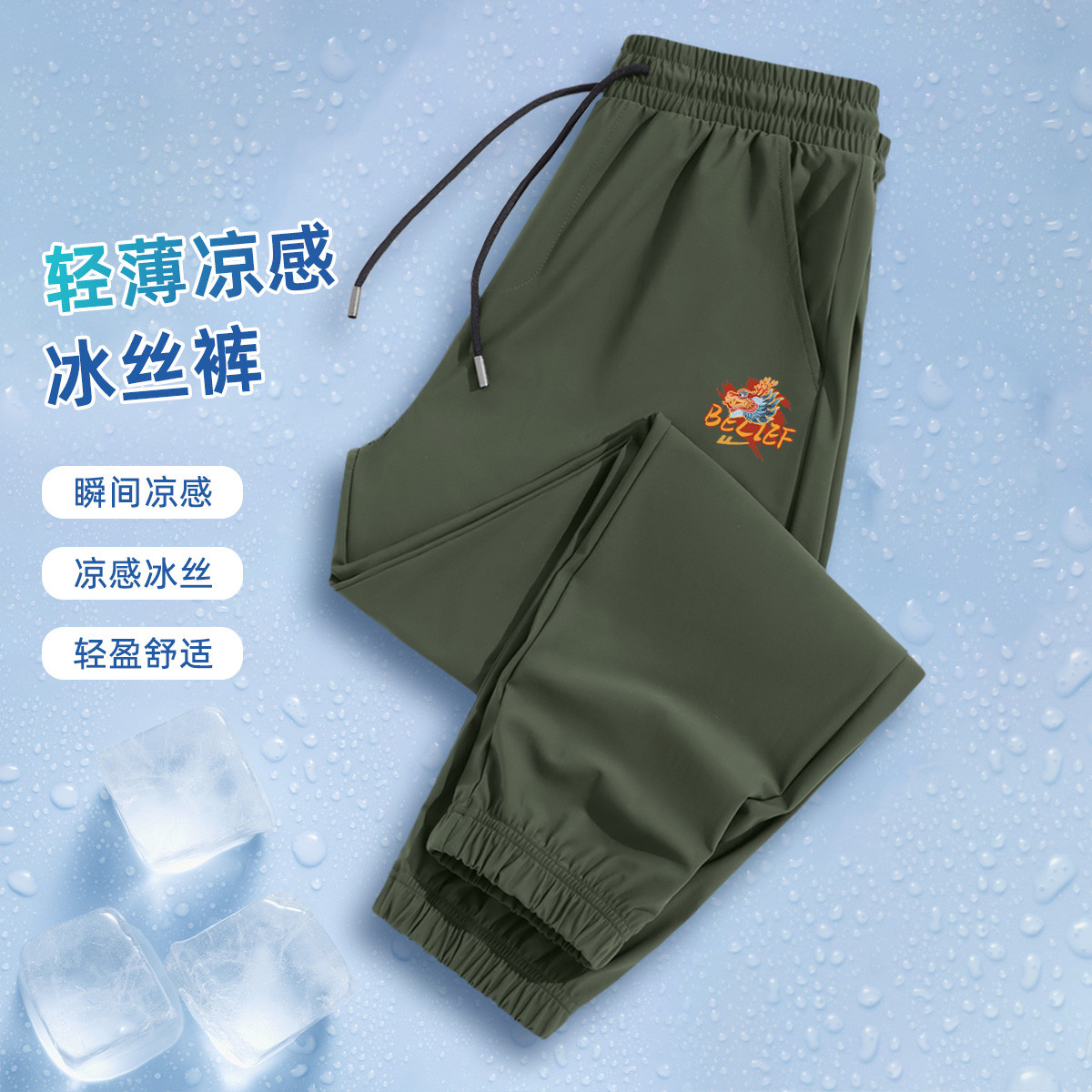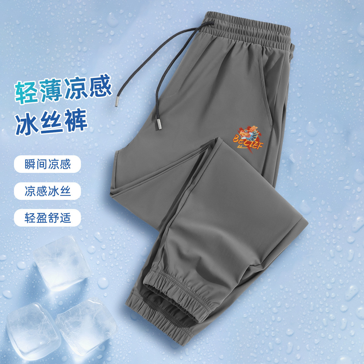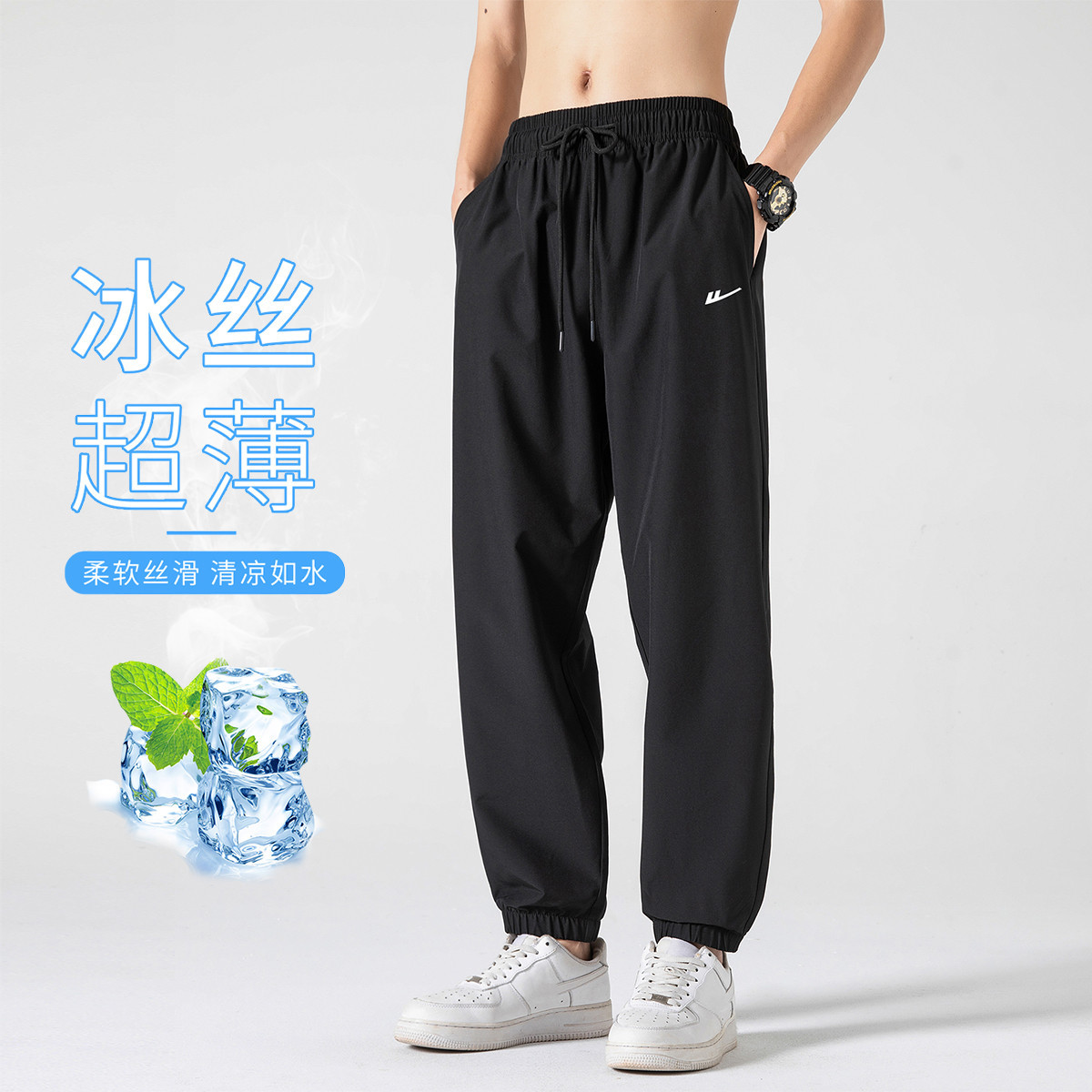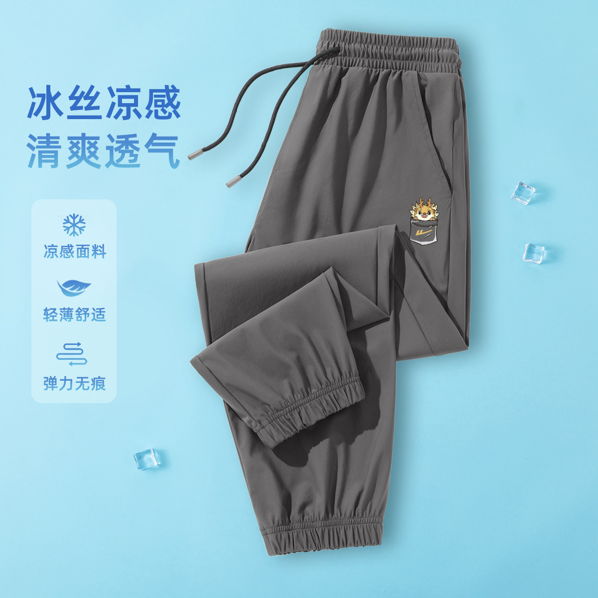 【冰感凉爽】夏季男士休闲裤冰丝凉感透气薄款空调长裤运动束脚裤 510867