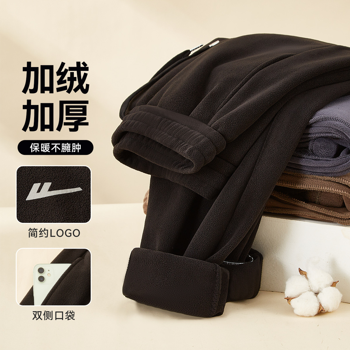 【加绒加厚】冬季男士运动裤高腰松紧裤保暖一体绒大码男裤休闲裤 164243