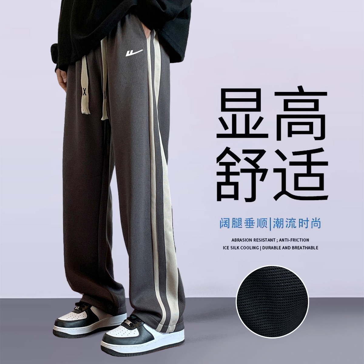 休闲裤男春秋季青少年宽松直筒长裤子潮牌垂感阔腿裤抽绳运动裤男 243667