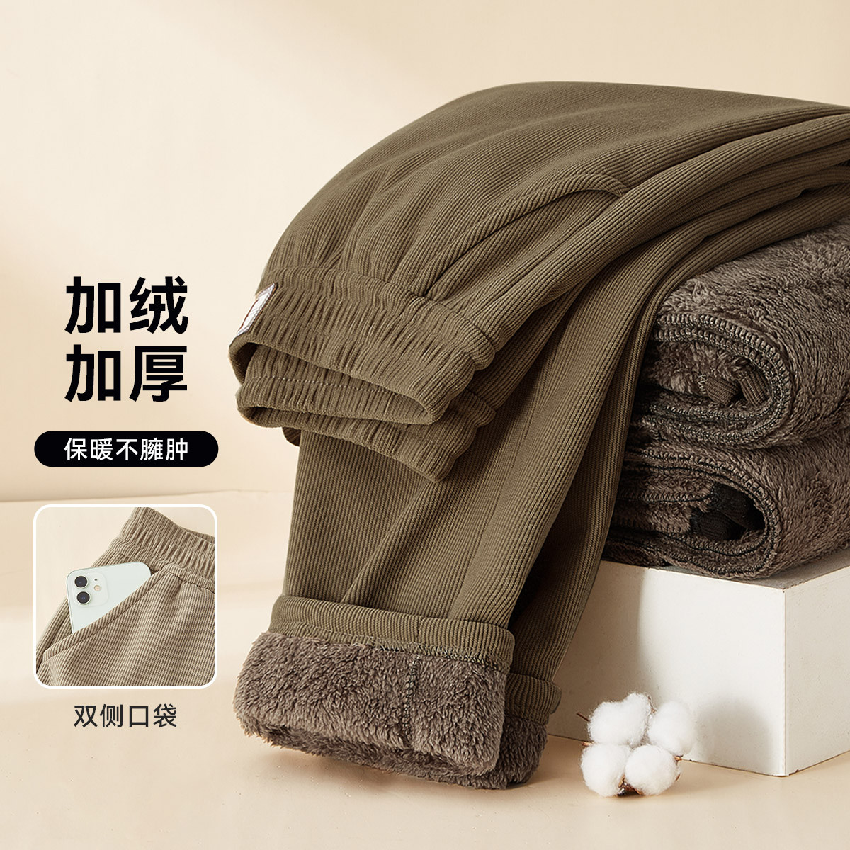 仿羊羔绒裤子男加绒加厚雪地裤大码休闲裤外穿防风保暖棉裤 044627