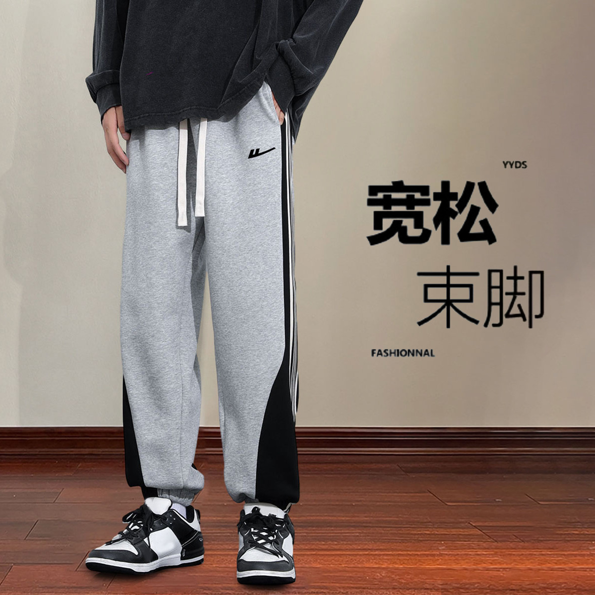 户外运动裤春秋季男款潮流百搭休闲裤青少年拼色宽松卫裤束脚长裤 349459