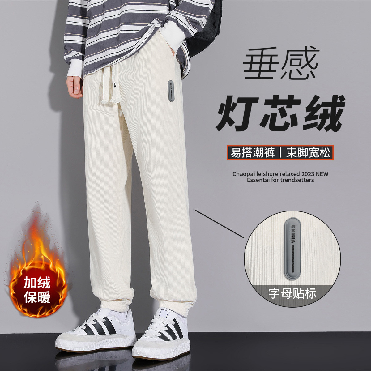 【灯芯绒 加绒】冬季款束脚裤运动裤男式保暖休闲裤宽松裤子男 909011