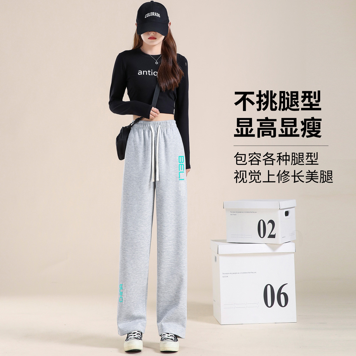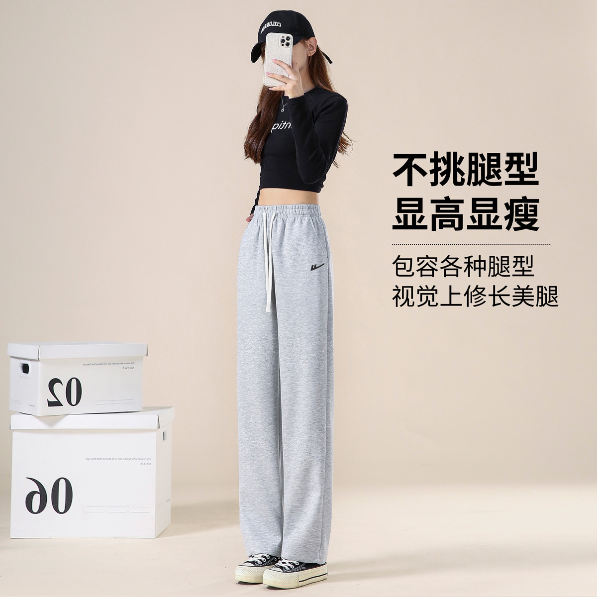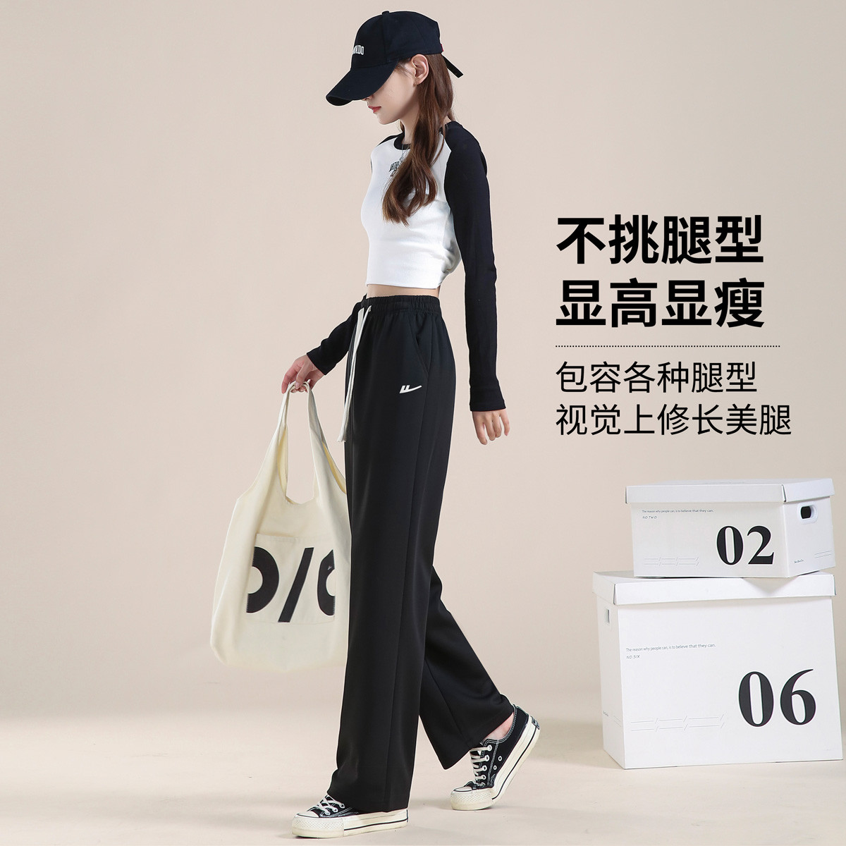 裤子女款春秋款百搭直筒卫裤女显瘦坠感长裤小个子运动裤 232211