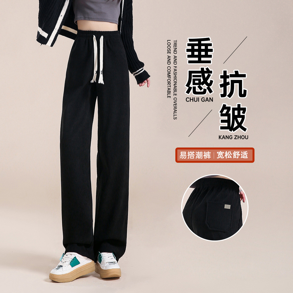 春季纯色百搭女式时尚灯芯绒直筒休闲长裤高腰显瘦休闲裤女 506899