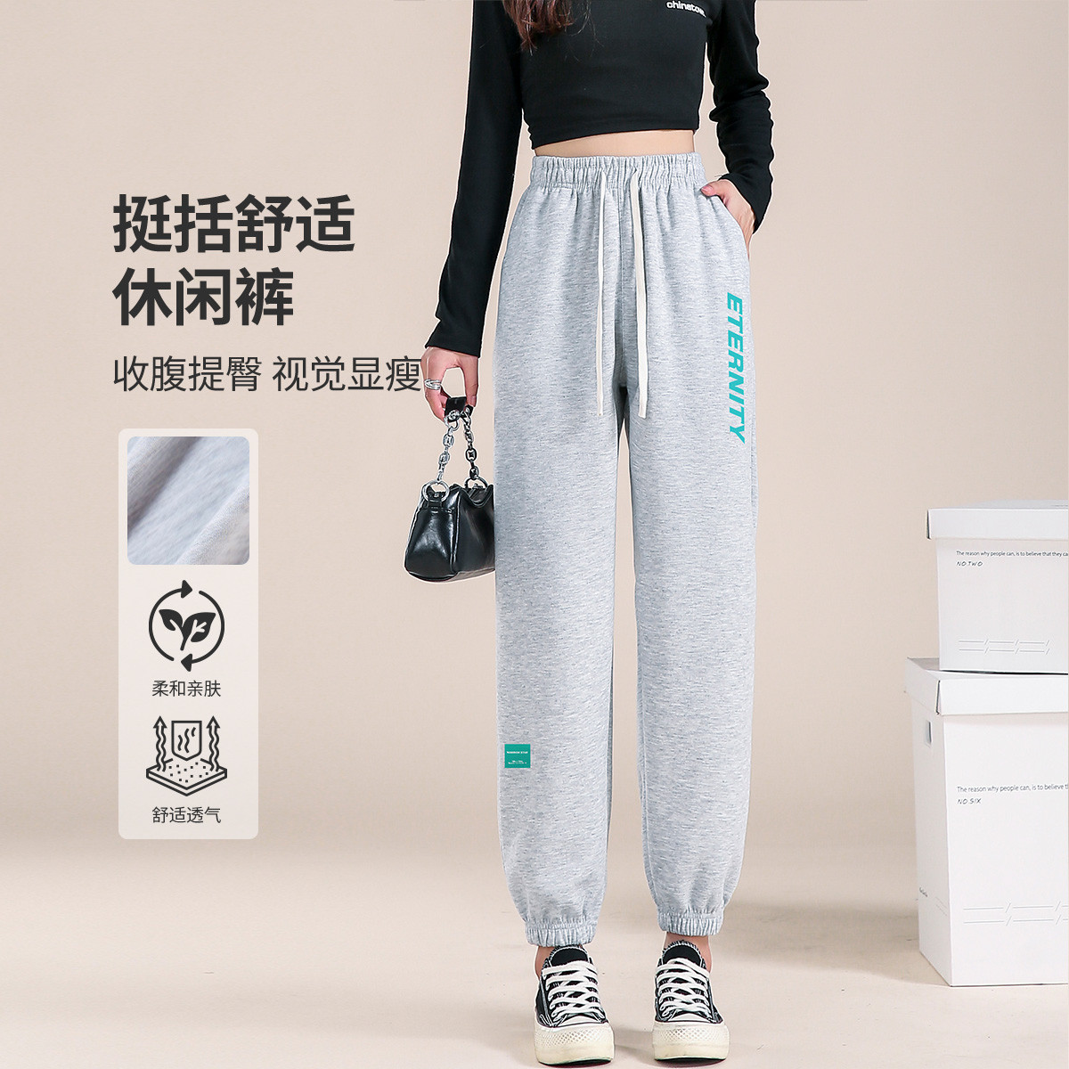 运动裤女宽松束脚休闲裤女春季休闲小脚百搭卫裤子ins女士 224211