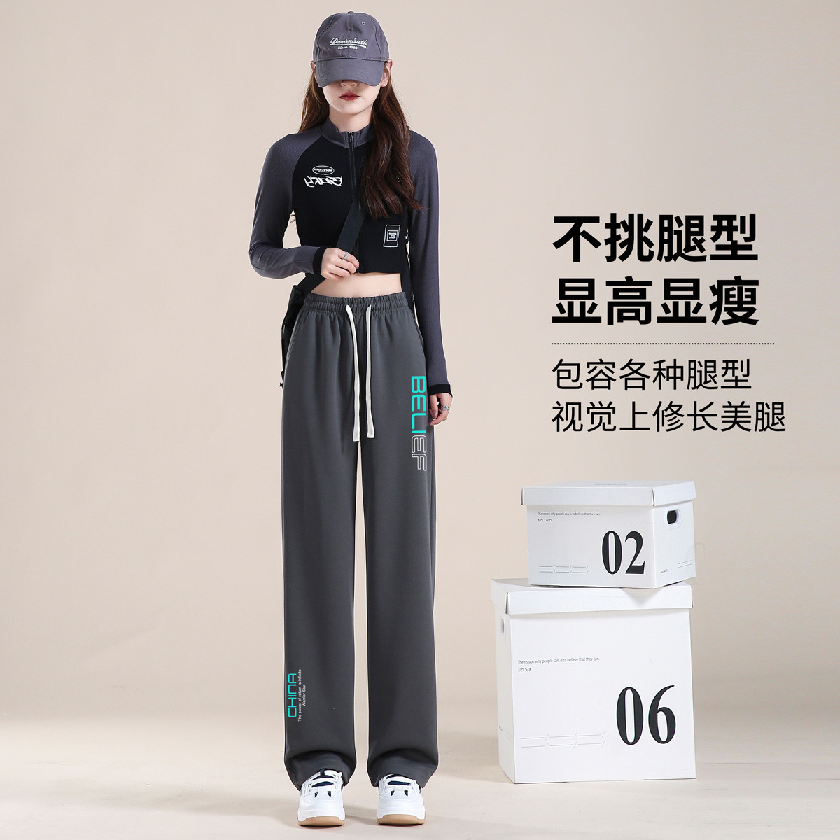 运动裤女春秋款青少年宽松显瘦小个子百搭直筒卫裤休闲裤 277267