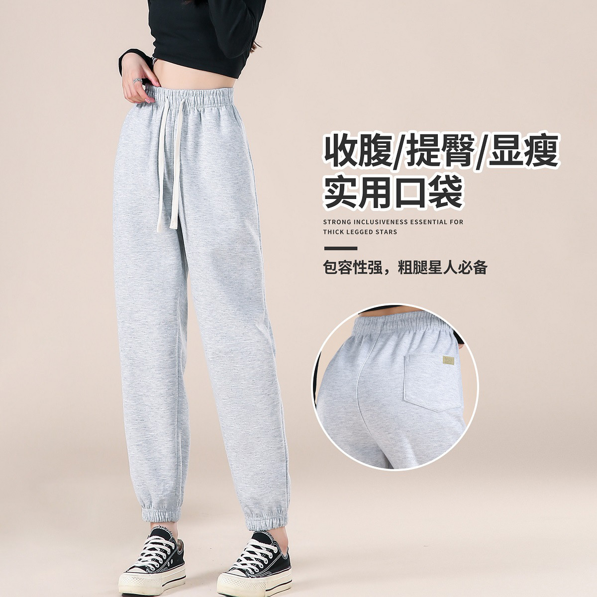 裤子女春秋款显瘦束脚运动裤高腰小个子宽松休闲卫裤女 266451