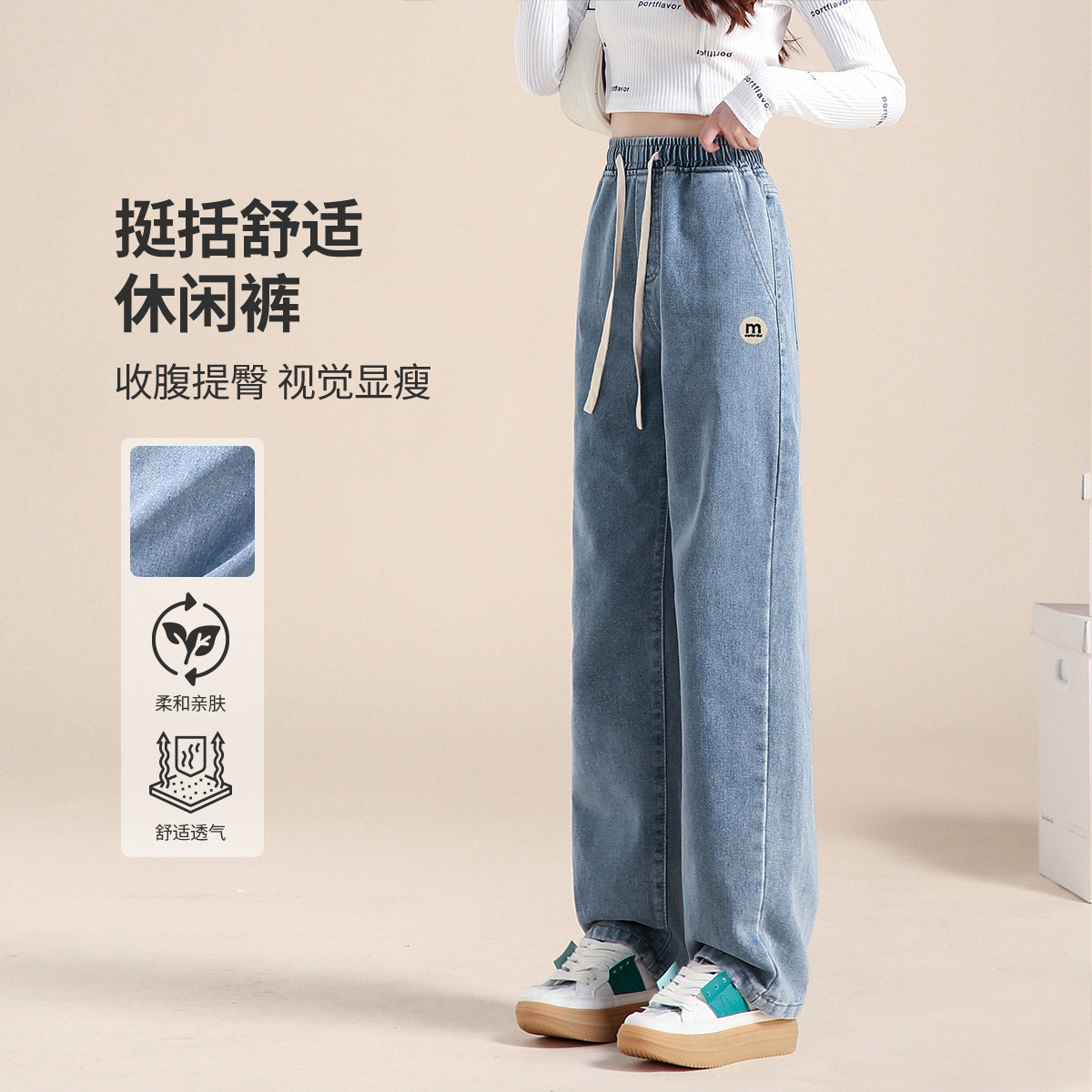 【简约百搭】春秋季宽松直筒牛仔裤女显瘦高腰泫雅风阔腿裤子女 874067