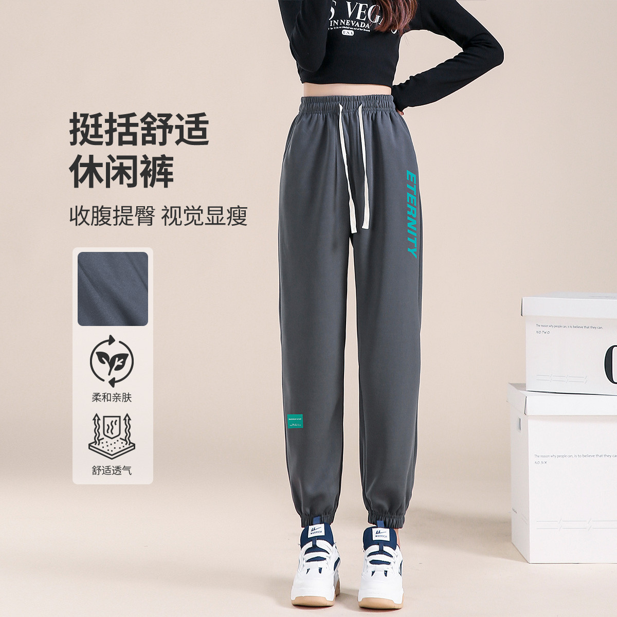 裤子女春秋款显瘦束脚运动裤高腰小个子宽松休闲卫裤女 204691