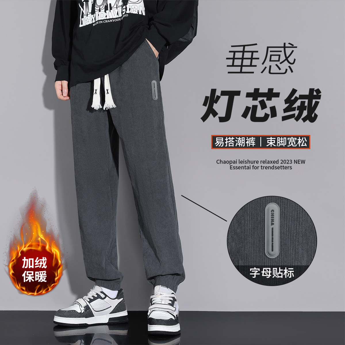 【灯芯绒 加绒】冬季款束脚裤运动裤男式保暖休闲裤宽松裤子男 334995
