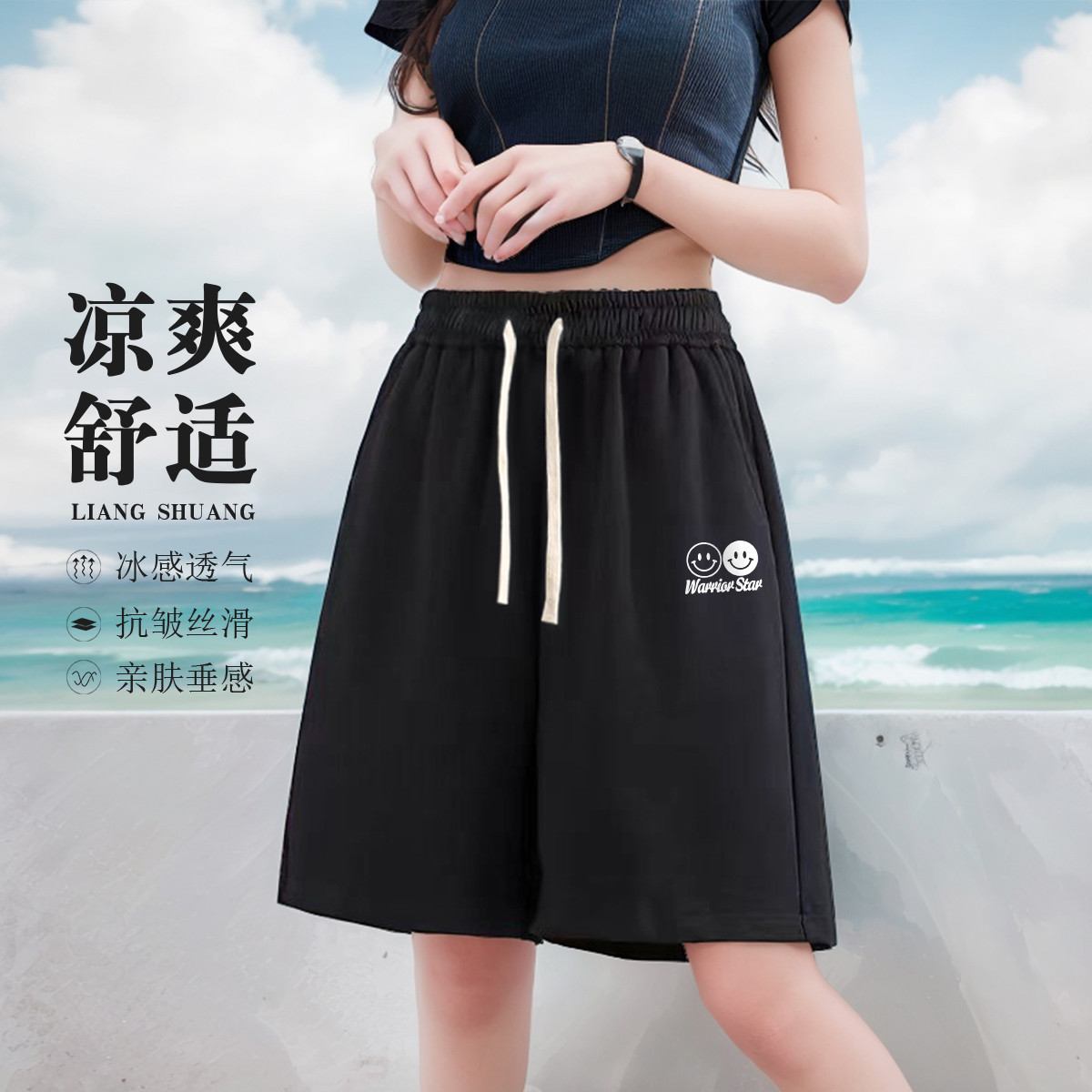 冰丝阔腿短裤女夏季薄款宽松运动休闲裤高腰五分中裤直筒裤 304083