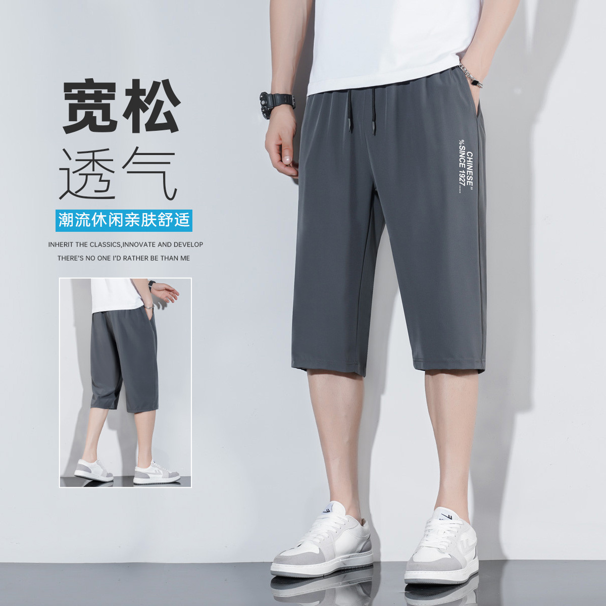 休闲裤男士夏季薄款冰丝七分裤潮流男式潮流宽松系绳运动裤卫裤 528787